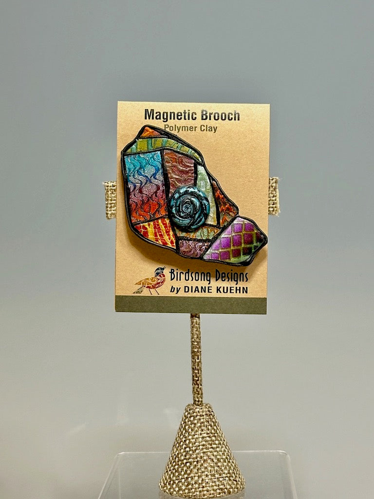ABSTRACT POLYMER CLAY MAGNETIC BROOCH WITH SWAROVSKI CRYSTAL PCB706