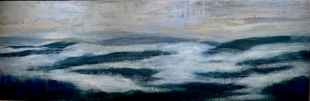 Original Charcoal and Acrylic Wash Painting on wood panel with custom shadow box frame.