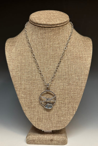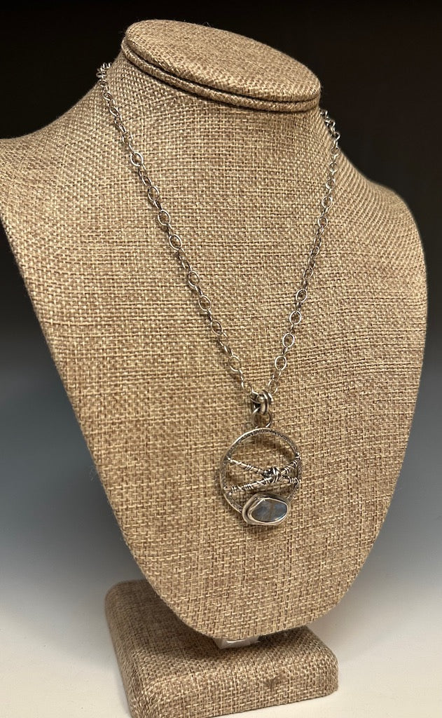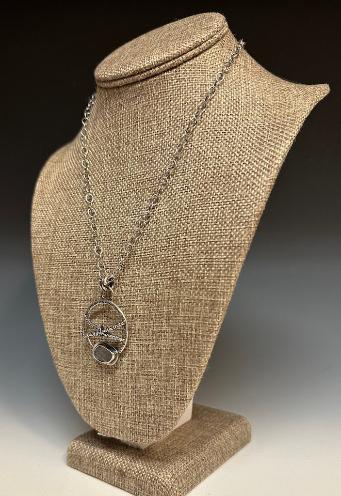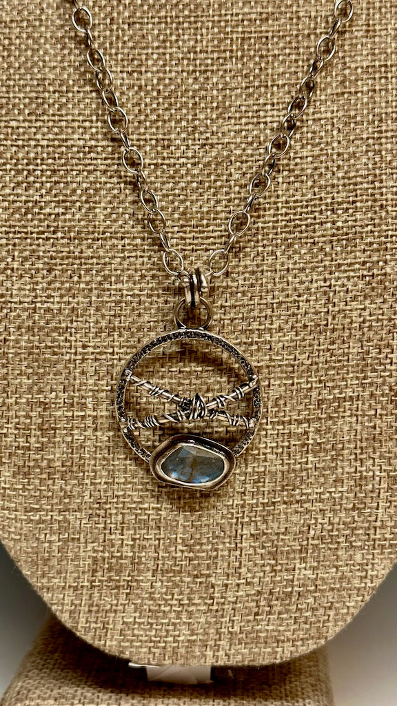 .925 XO LABRADORITE PENDANT ON OXIDIZED STERLING SILVER OVAL LINK CHAIN BR106