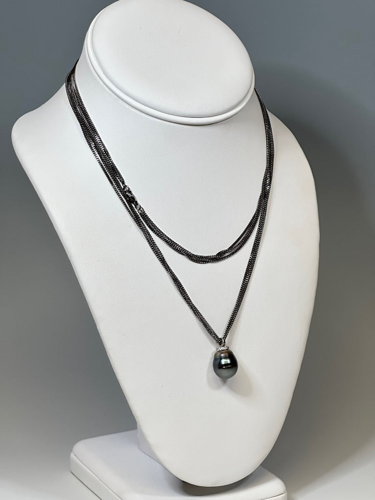 TAHITIAN AND DIAMOND DROP PENDANT WITH 18k GOLD AV122