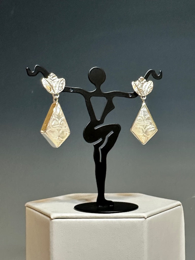 CARVED MOTHER OF PEARL STERLING SILVER Earrings NM521E