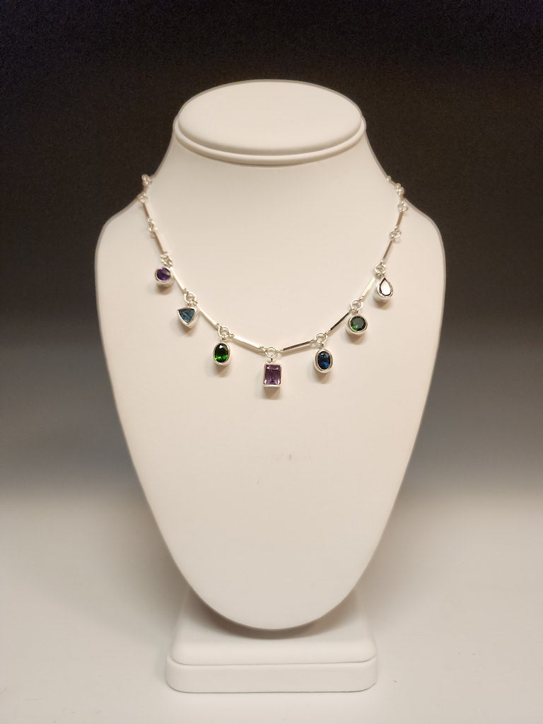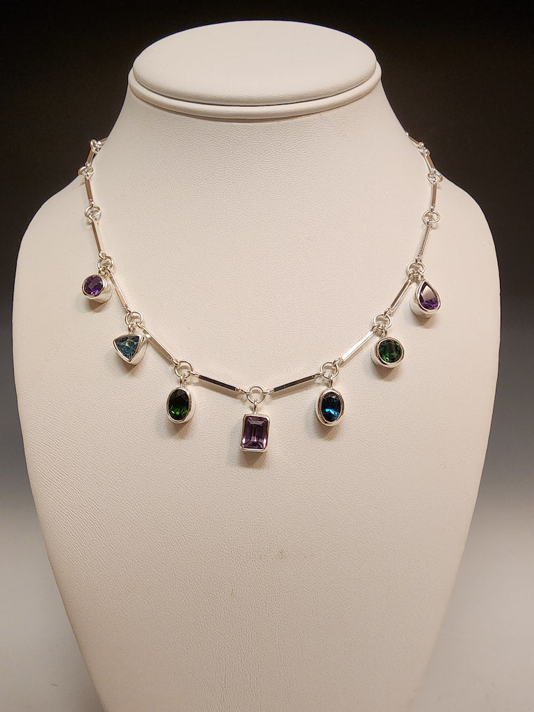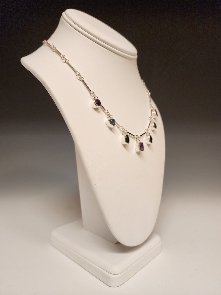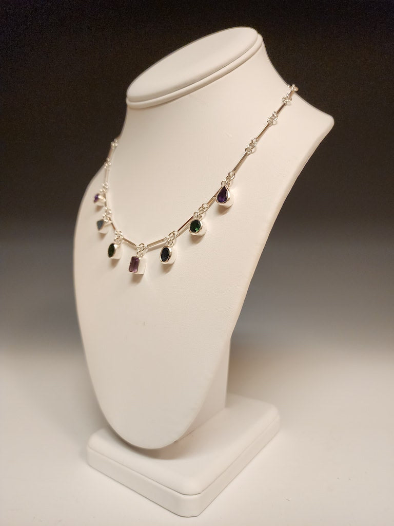 MULTI-STONE AND STERLING SILVER HANDMADE NECKLACE- NM483N