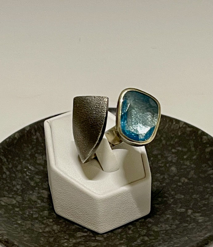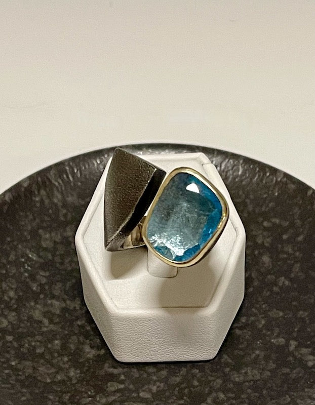 OXIDIZED STERLING SILVER LARGE WRAP RING WITH TOPAZ BR315255