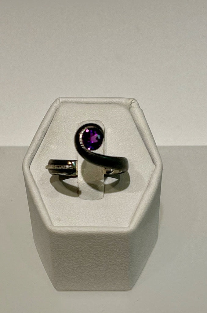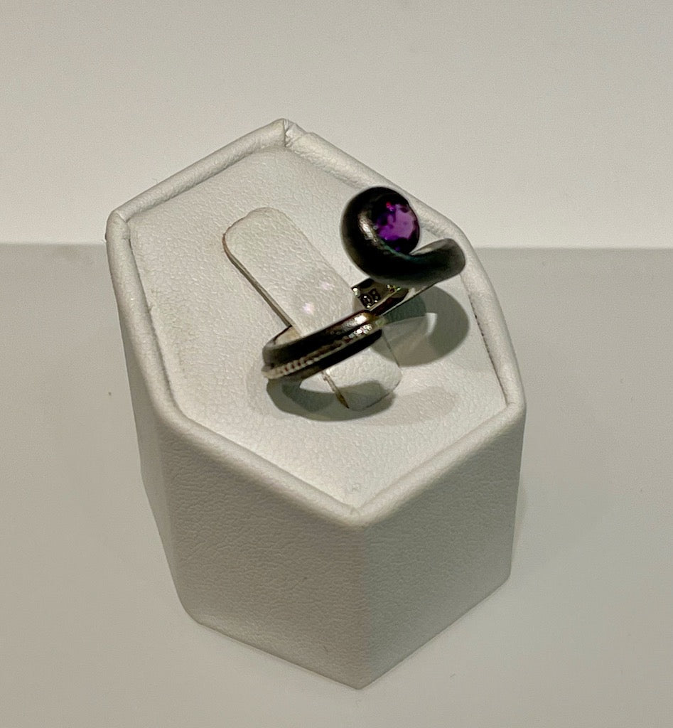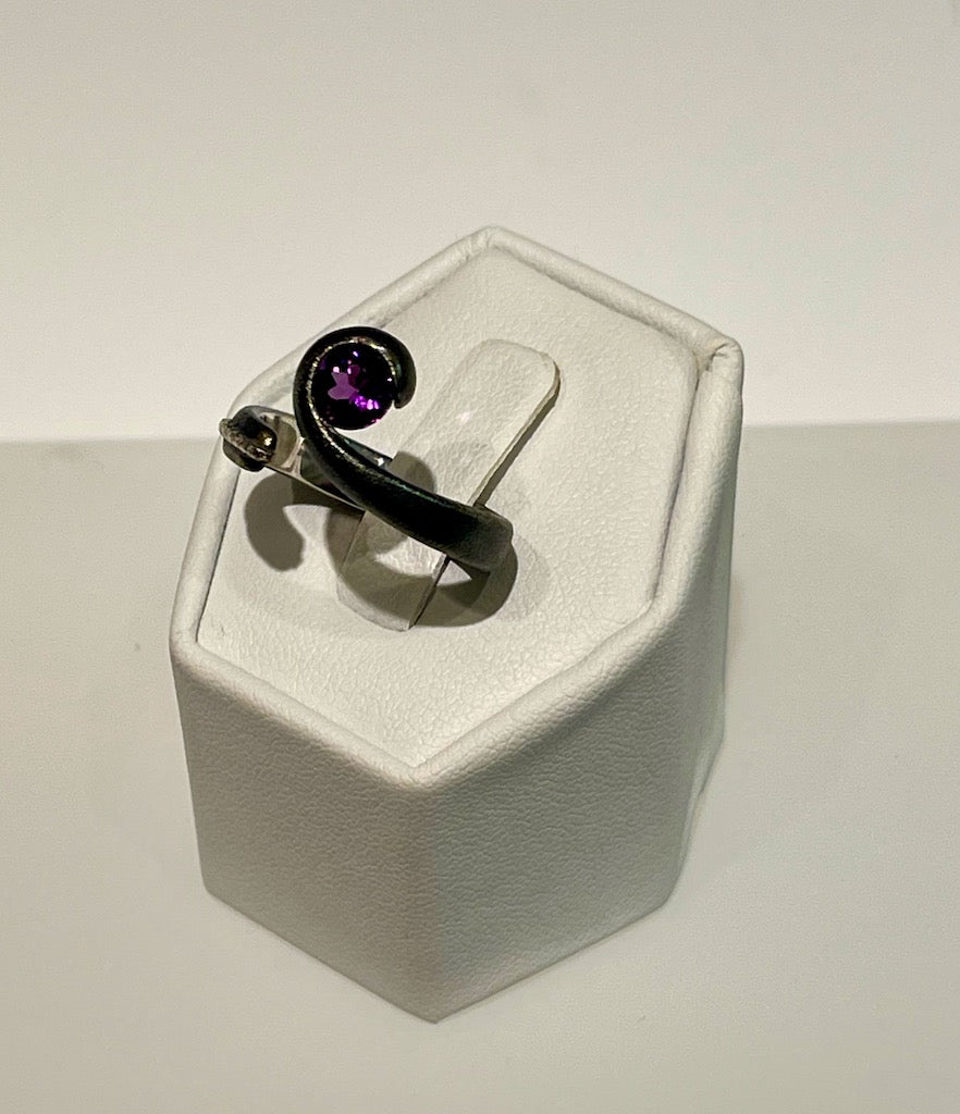 AMETHYST RING WITH OXIDIZED STERLING SILVER BR0979