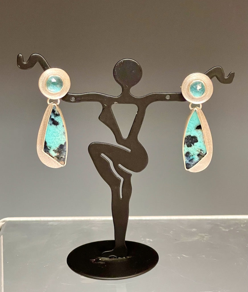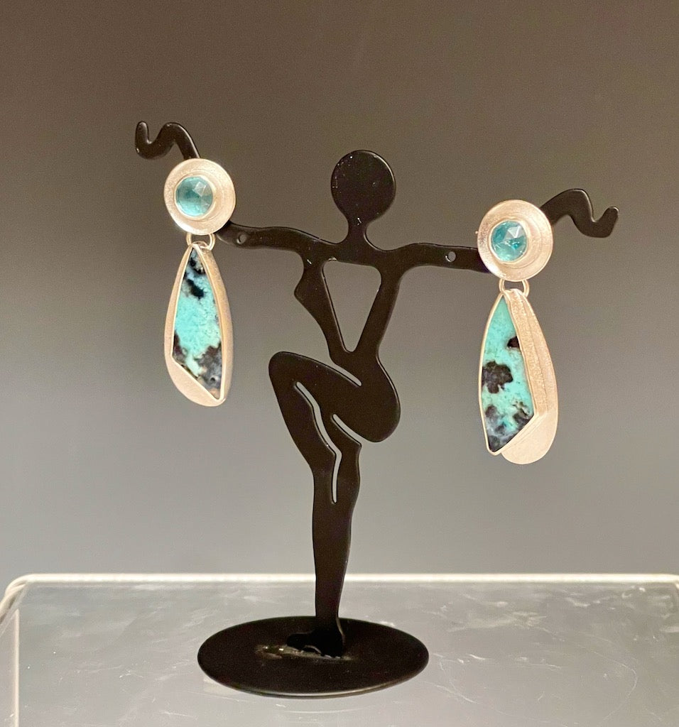 PETRIFIED OPALIZED WOOD AND APATITE Sterling Silver Earrings NM418E