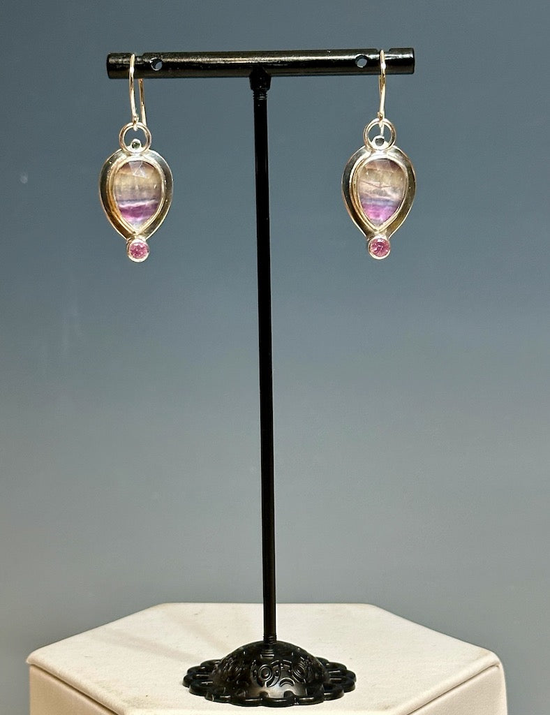 FLUORITE AND PINK TOURMALINE STERLING SILVER Earrings NM509E