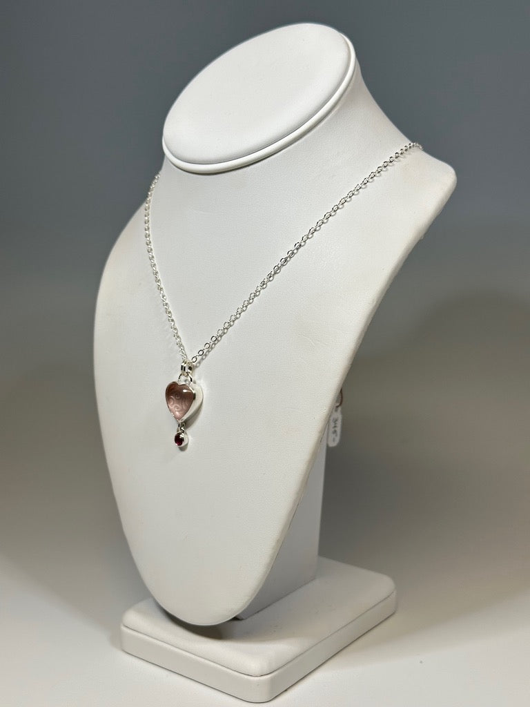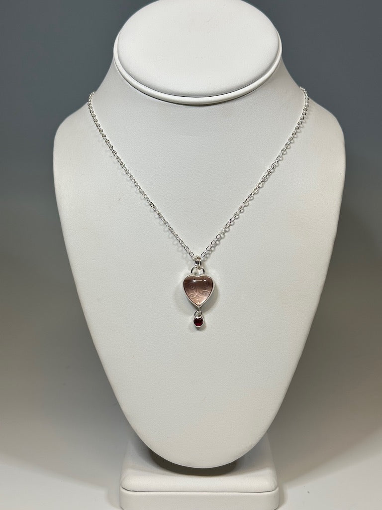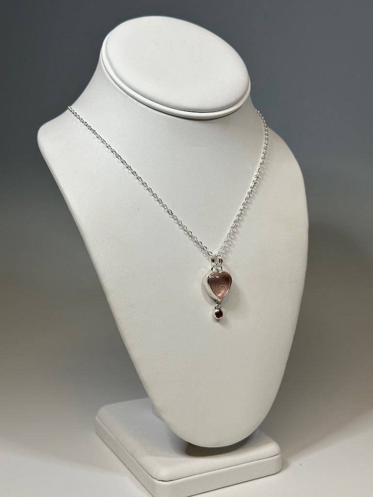 ROSE QUARTZ AND RUBY HEART STERLING SILVER NECKLACE - NM550N