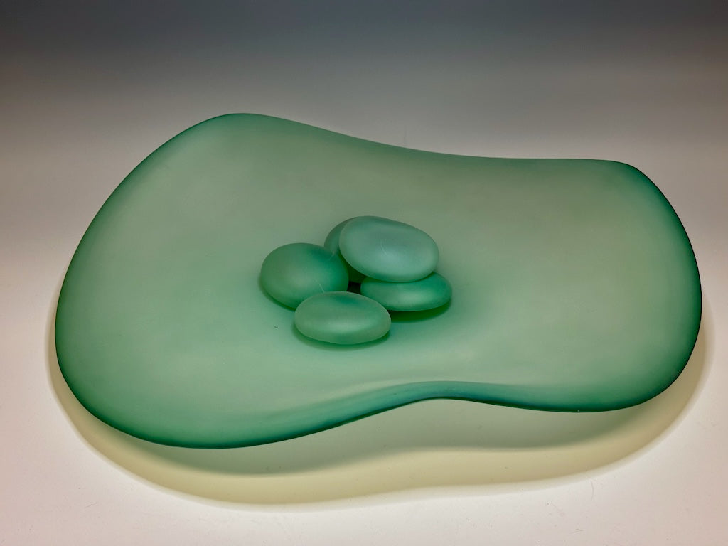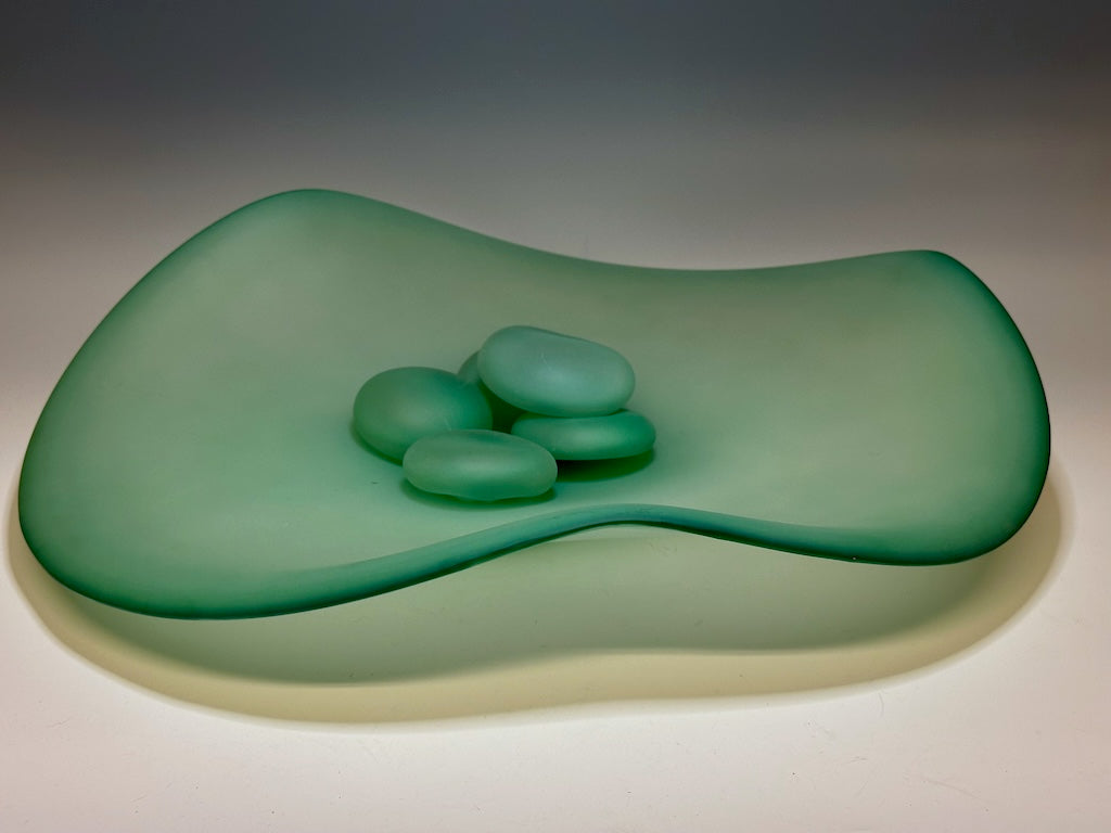 River Rock Series - Green Free Flow Glass Bowl with Glass River Rocks