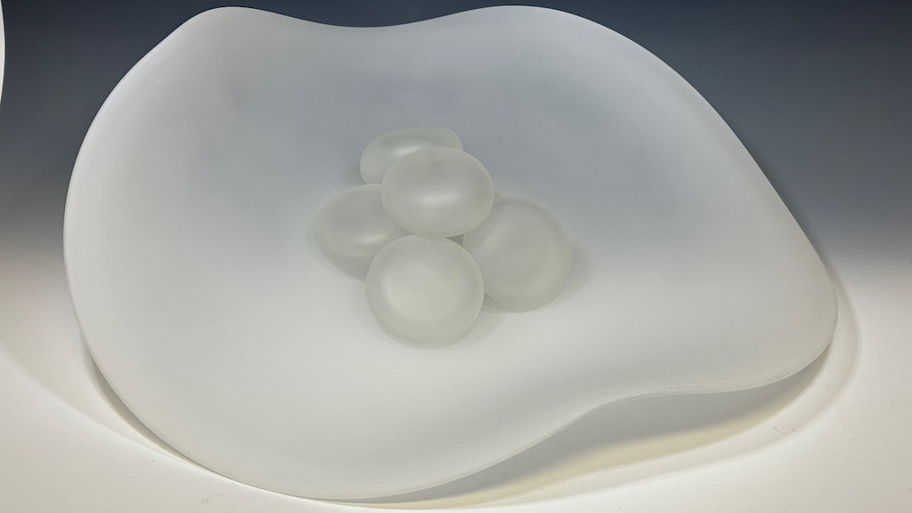 River Rock Series - Medium Frosted White Free Flow Glass Bowl with Glass River Rocks