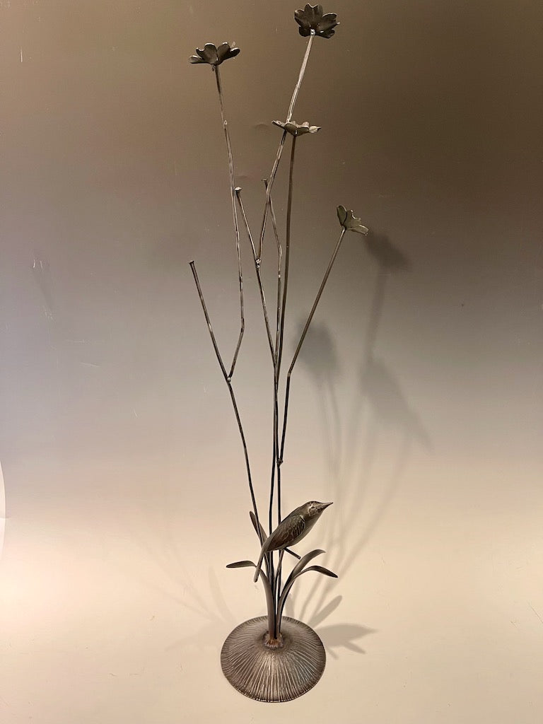 "FIELD STUDY II" Tall Black Metal Wren Sculpture.2" Hand Forged Metal Sculpture