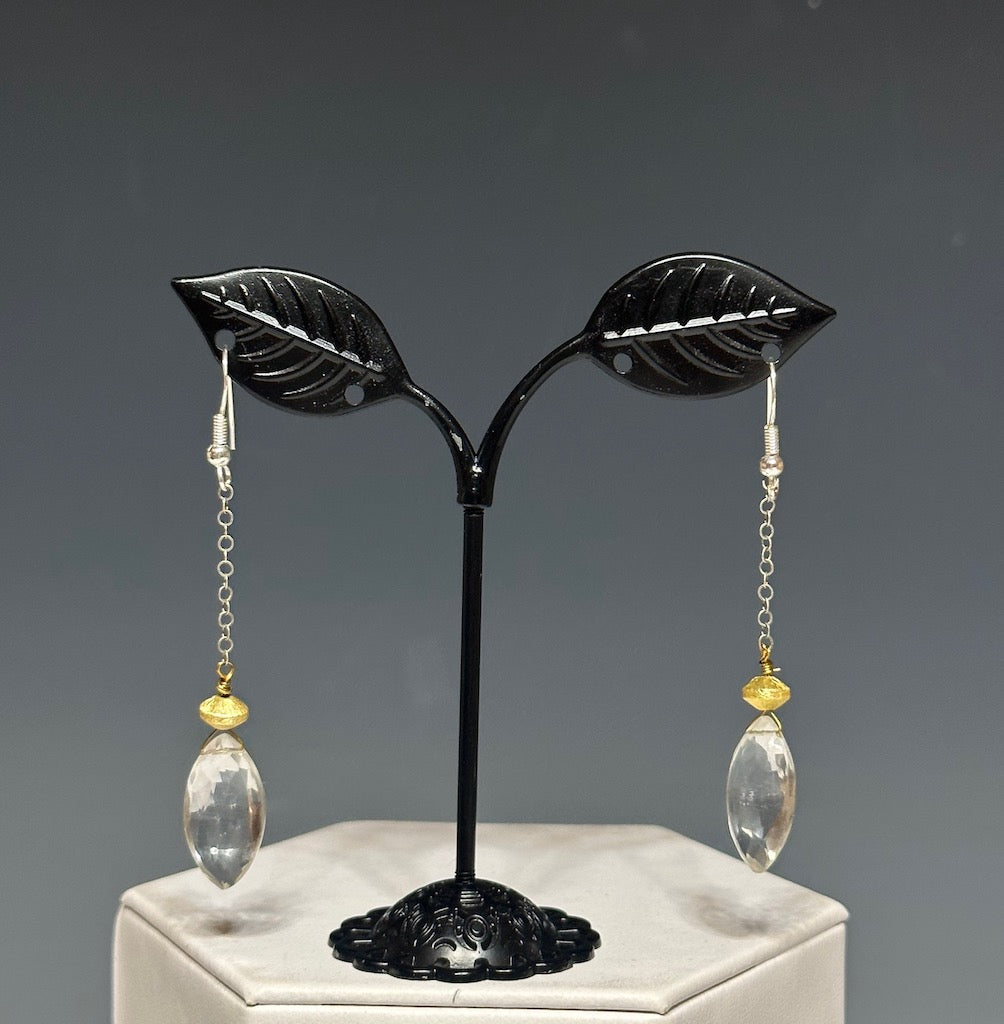 CLEAR CRYSTAL STERLING SILVER AND GOLD DROP EARRINGS LCE473