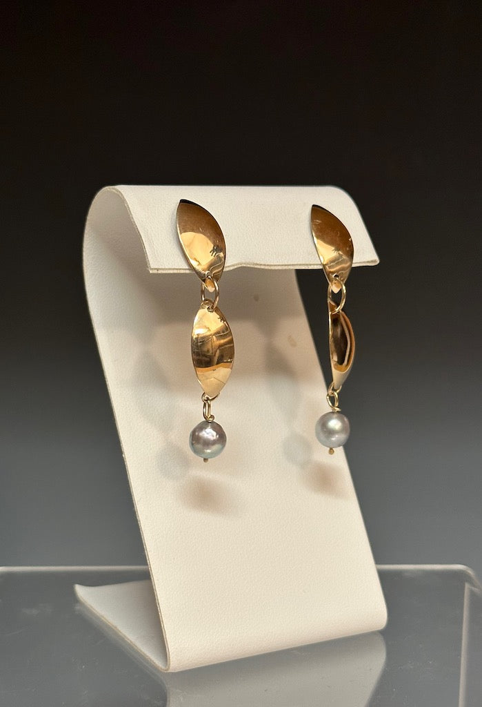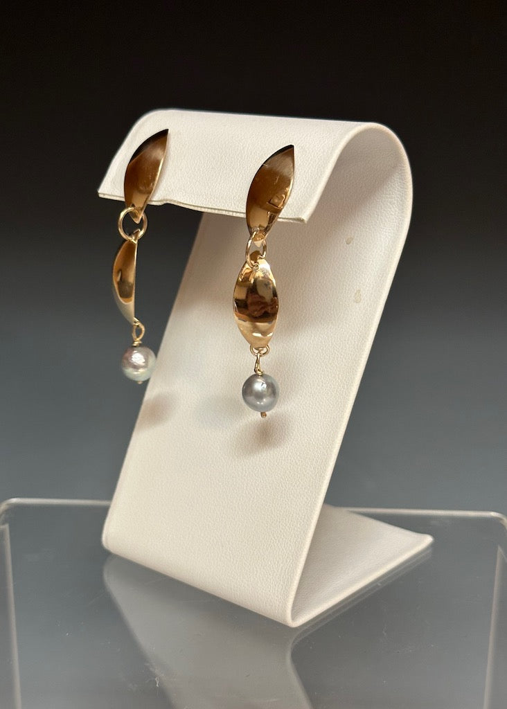 TWO PETAL 14K GOLD AND BLUE PEARL EARRINGS MB171E
