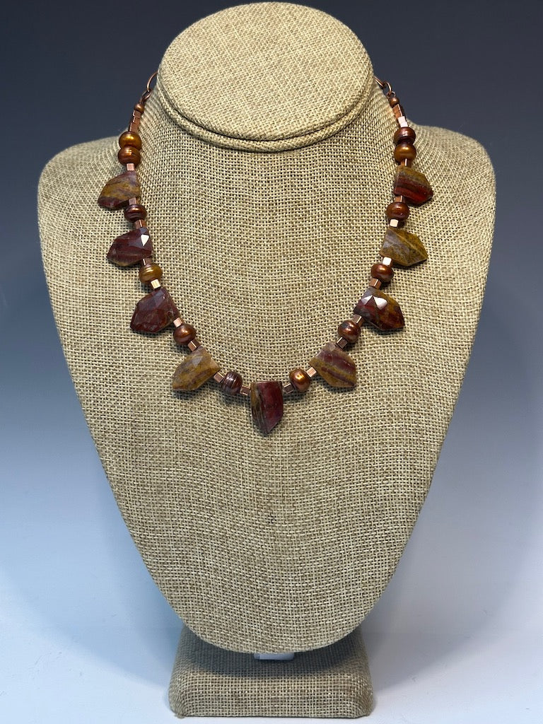 FACETED RED JASPER AND FRESH WATER PEARL NECKLACE LCN565