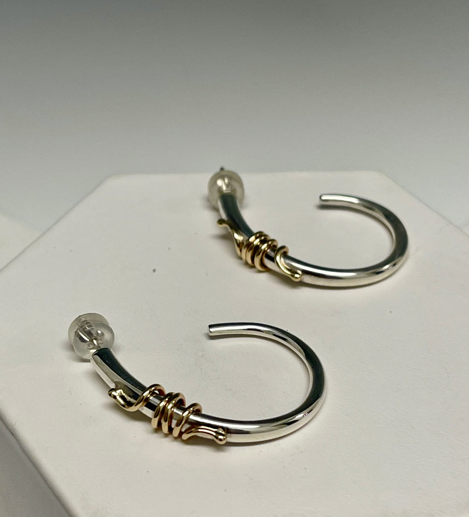 Sterling Silver "SP Hoop" Earrings with 14k Gold Detail MB119E