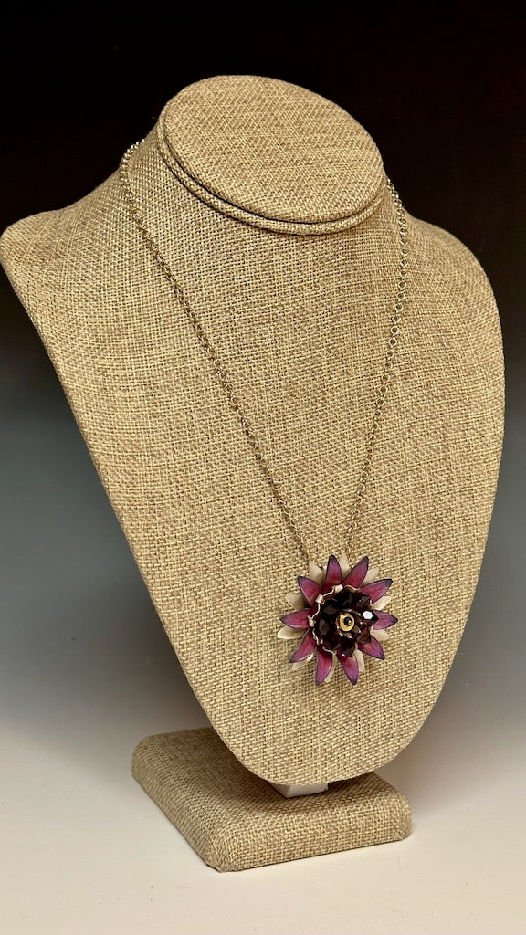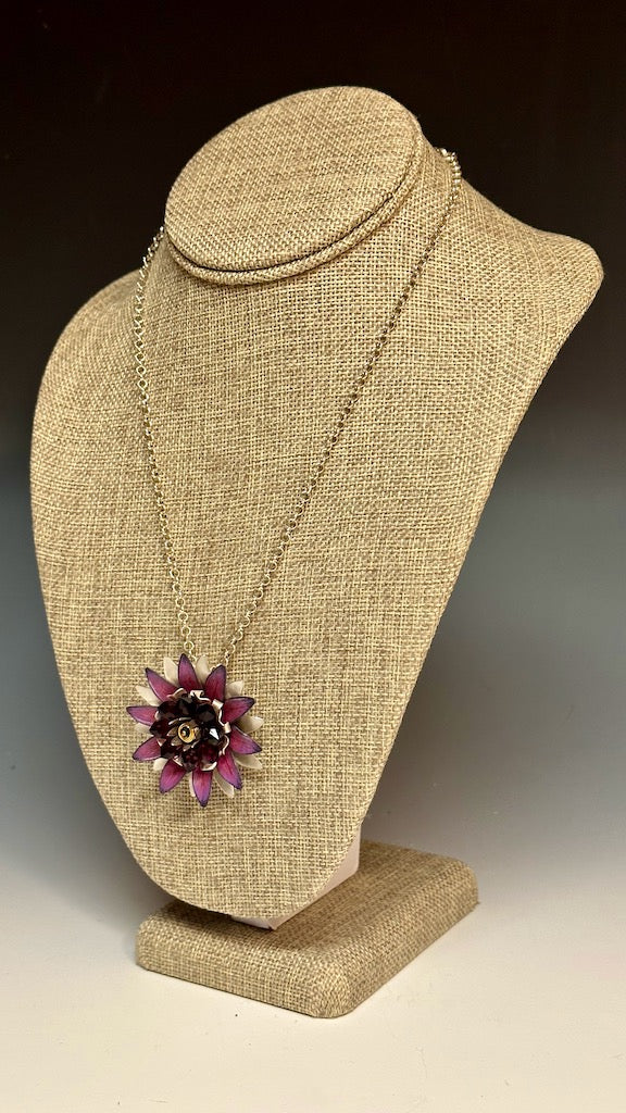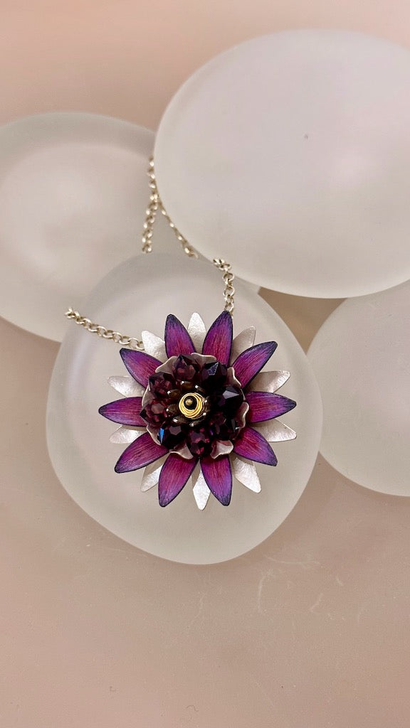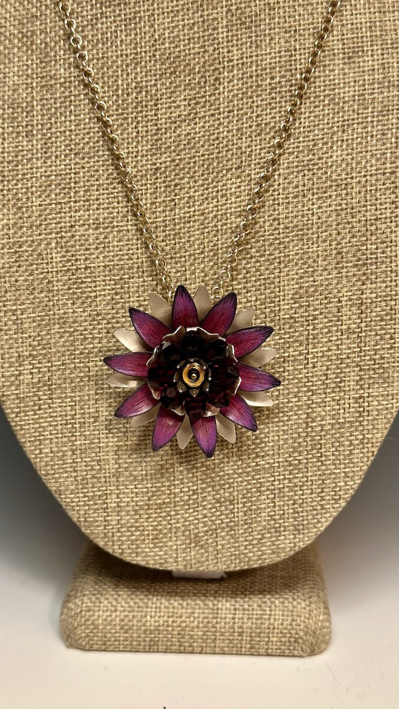 AMETHYST LOTUS WITH AMETHYST BEADS AND 18" STERLING SILVER ROLLS CHAIN DKA122