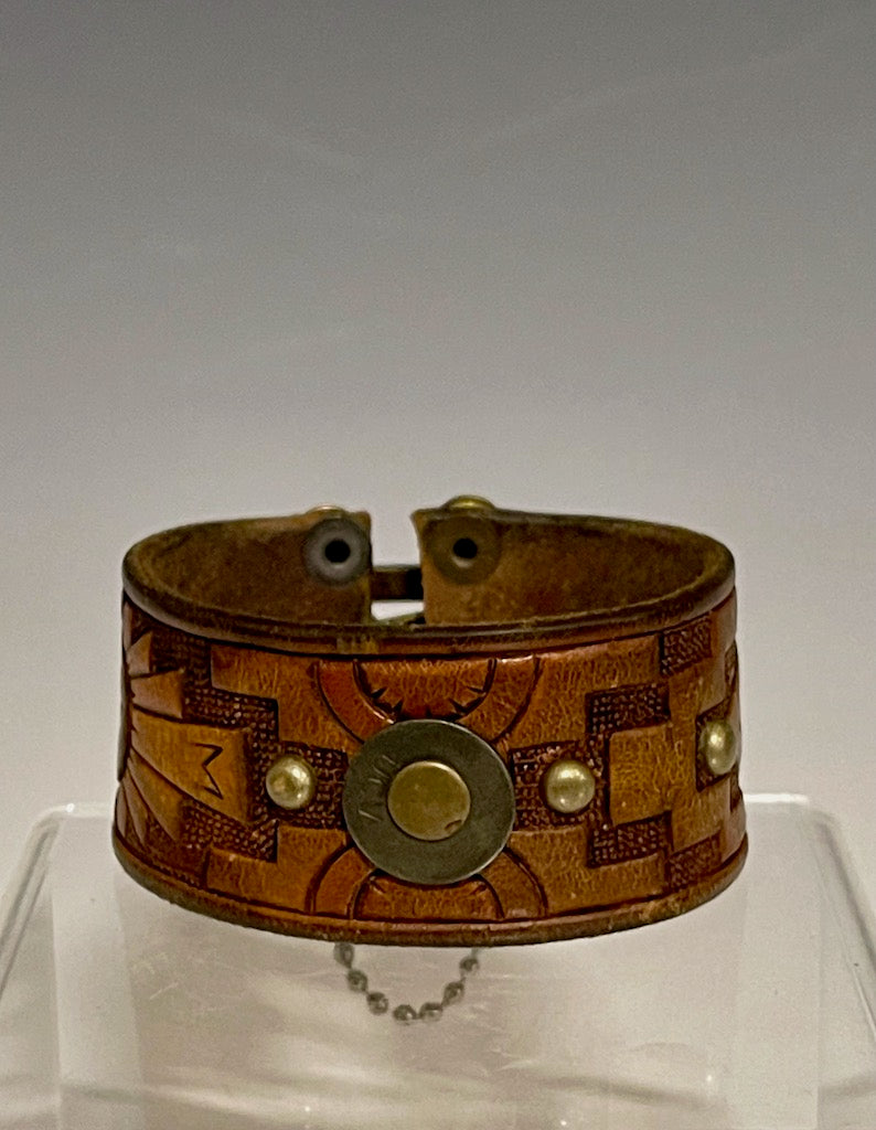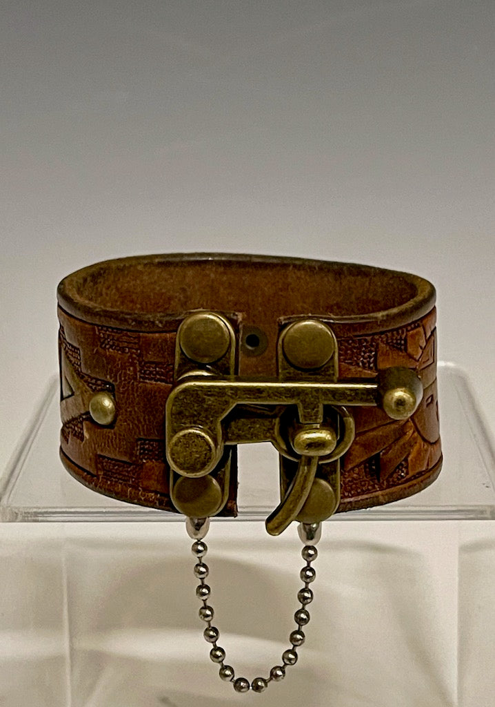 EMBOSSED BROWN Leather Cuff with Brass Closure MMC14