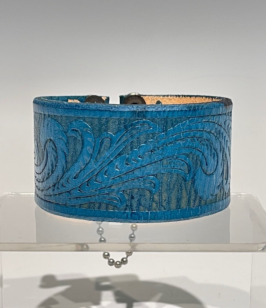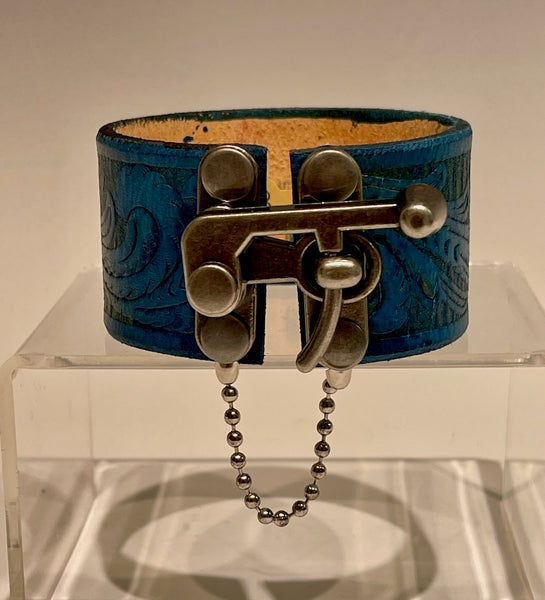 Distressed Blue Leather Cuff with Silver Closure MMC1