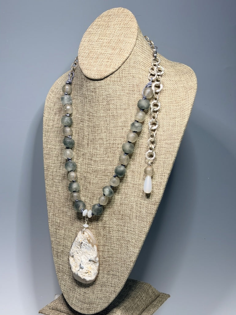 AFRICAN GLASS AND DENTRITIC QUARTZ FOCAL PENDANT STATEMENT NECKLACE LCN2027