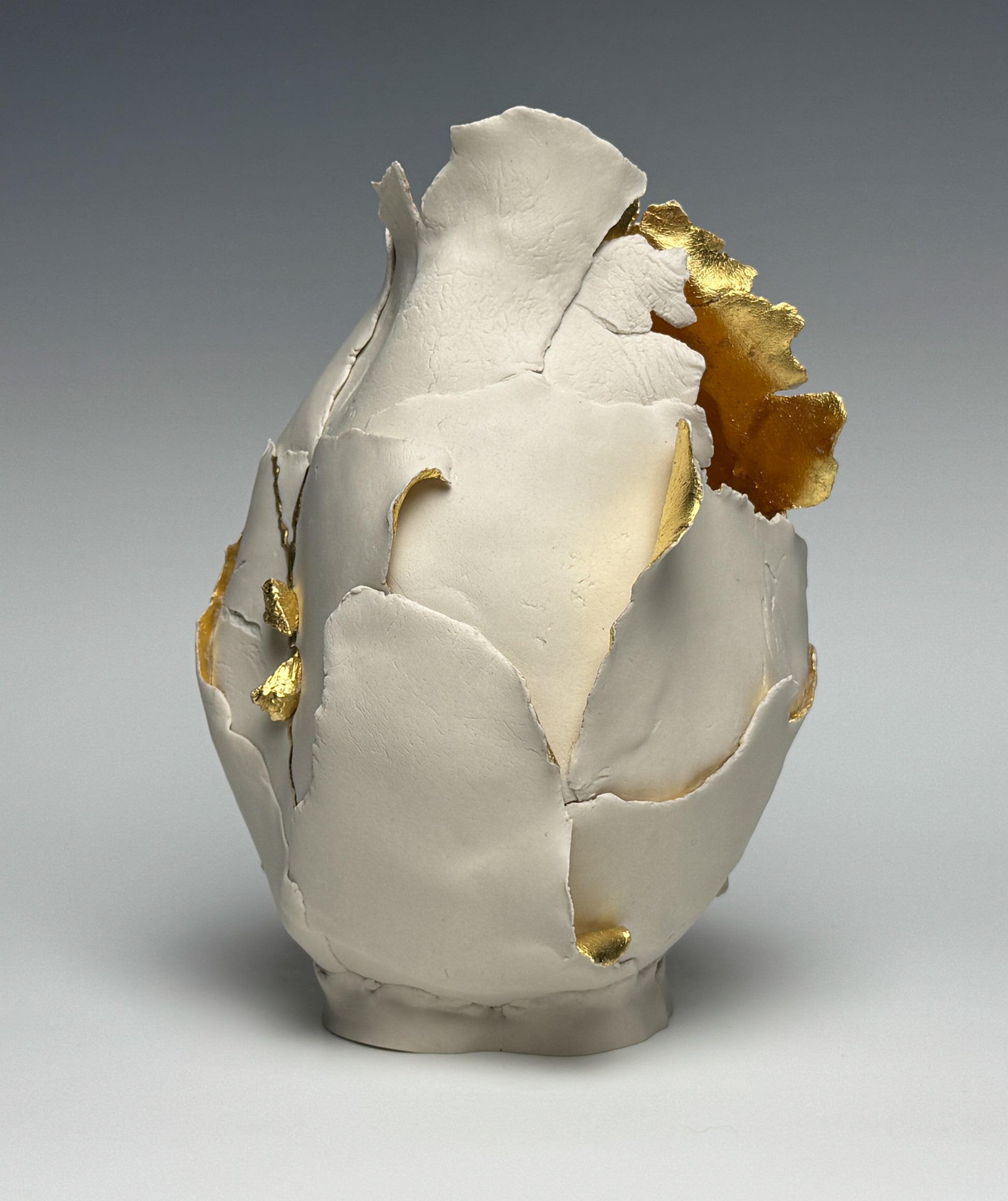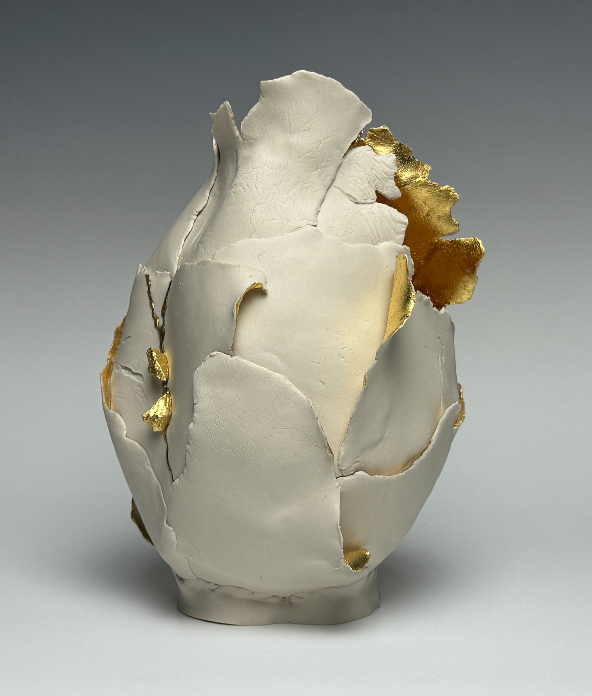 "HELD" PORCELAIN CERAMIC SCULPTURE WITH 23.75 KT GOLD LEAF