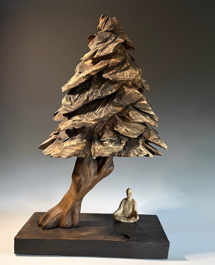 "REFLECTION" WHITE PINE AND MAPLE HAND CARVED WOOD SCULPTURE