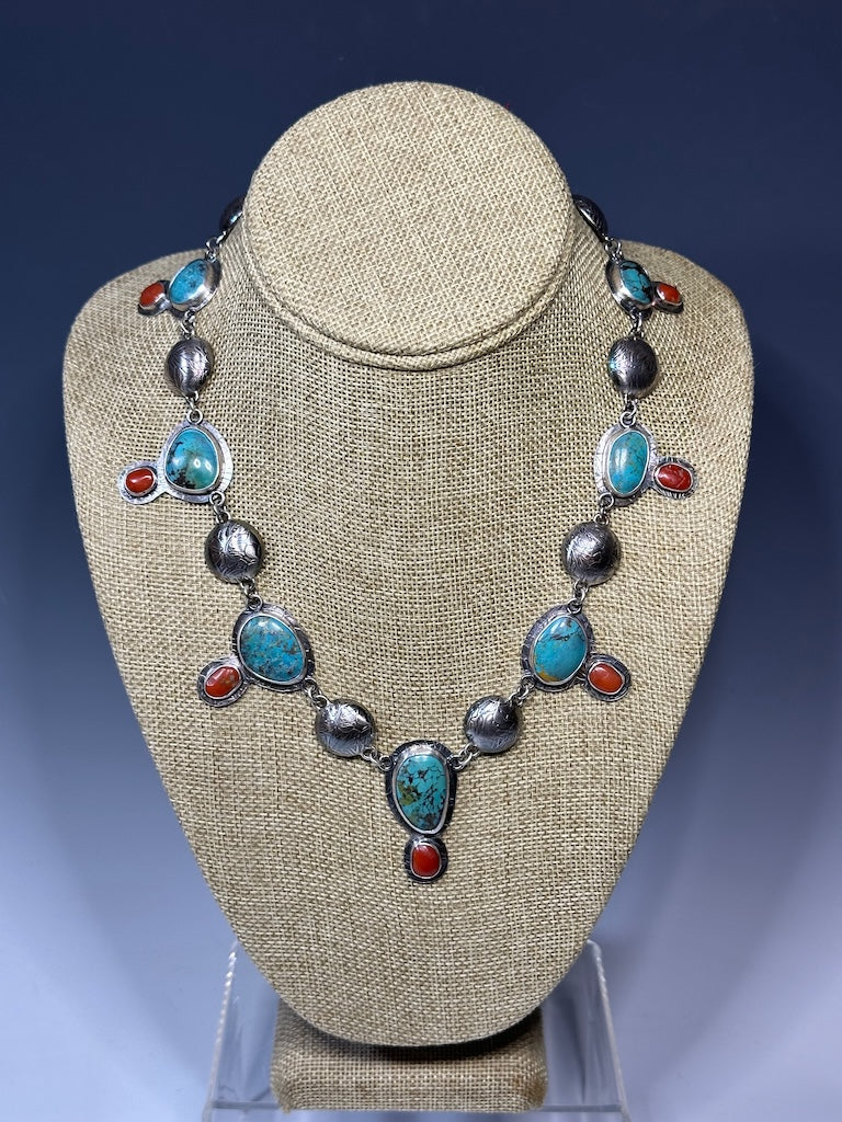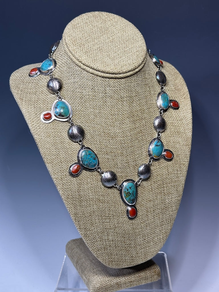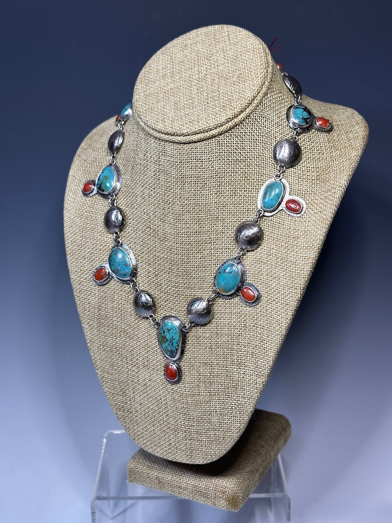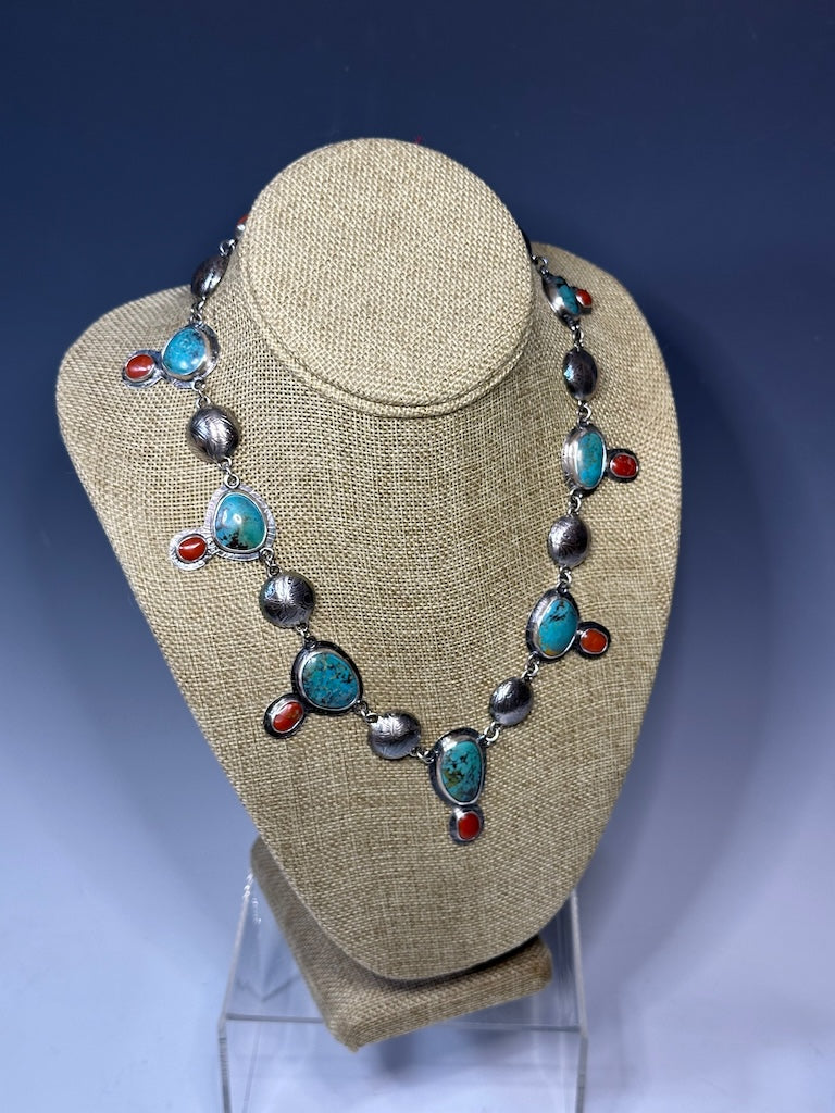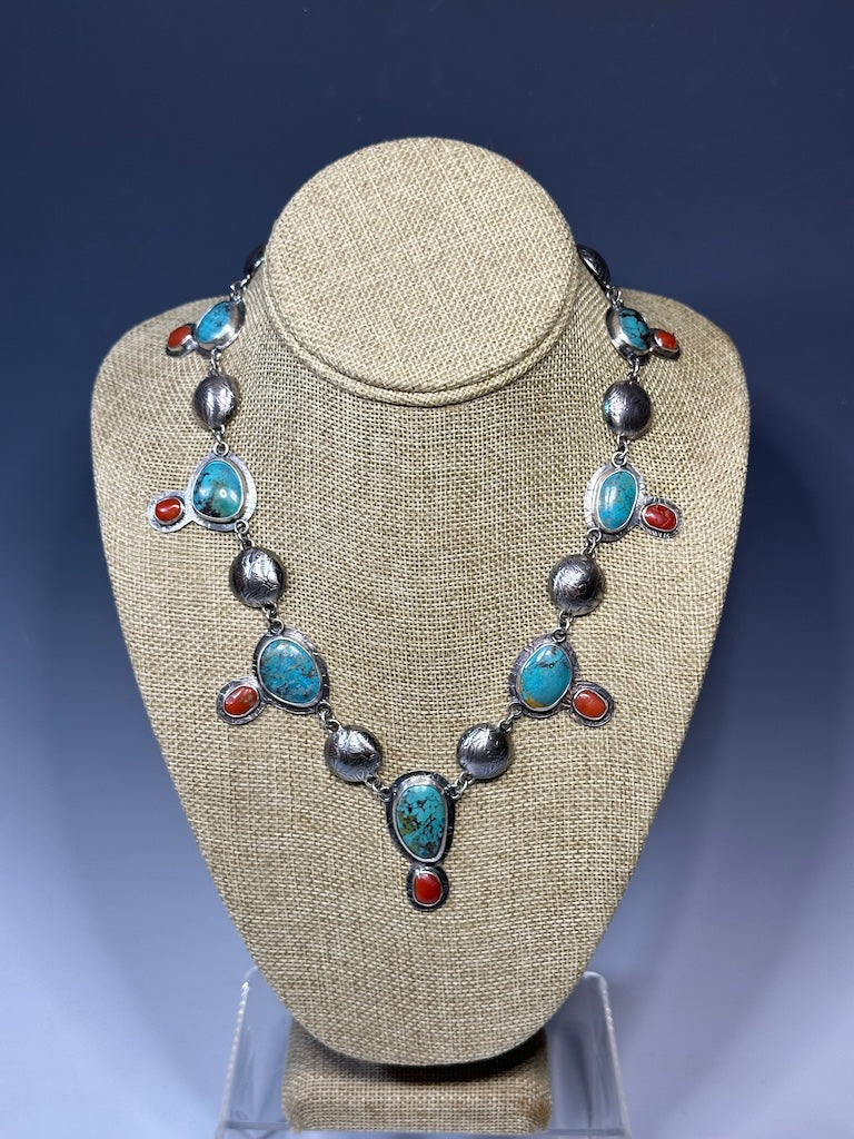 TURQUOISE AND VINTAGE CORAL NECKLACE NM582N
