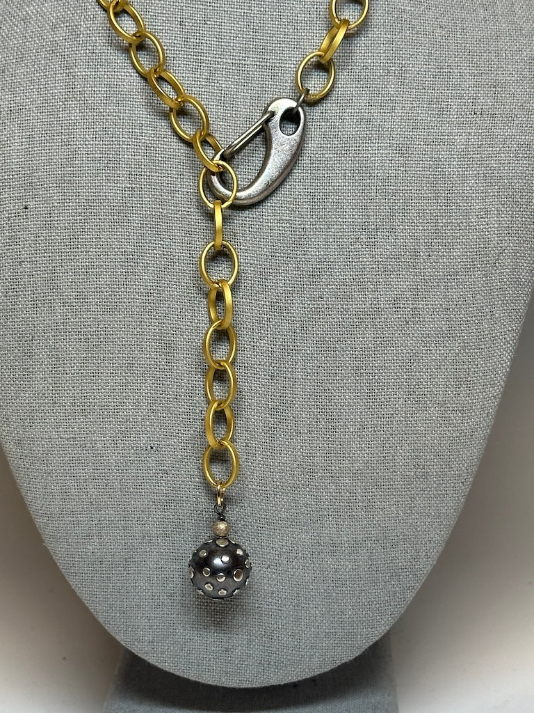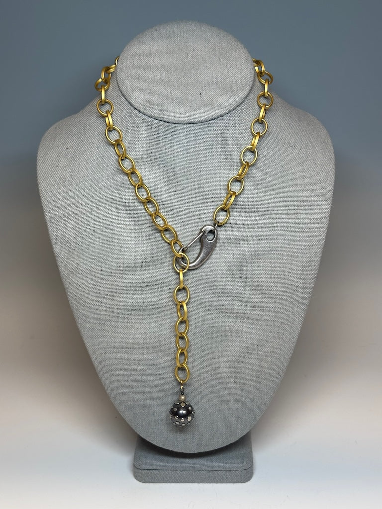 GOLD AND SILVER FRONT TOGGLE NECKLACE WITH OXIDIZED SILVER PENDANT LCN724