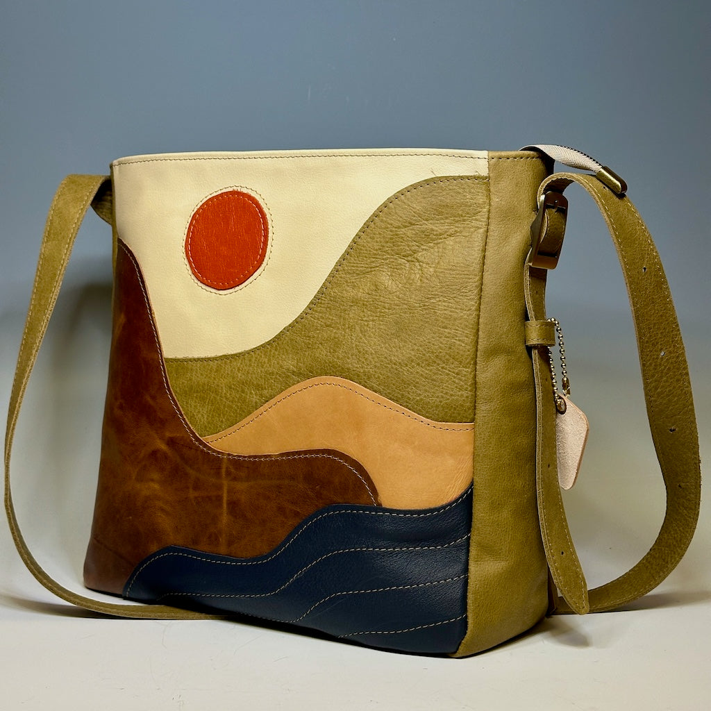 This bag is a dedication to our WNC tenacity and recovery. As mountains and sun shining in the clear sky, all I could think of was the hope we have after all of the heartbreak. She's one of a kind.