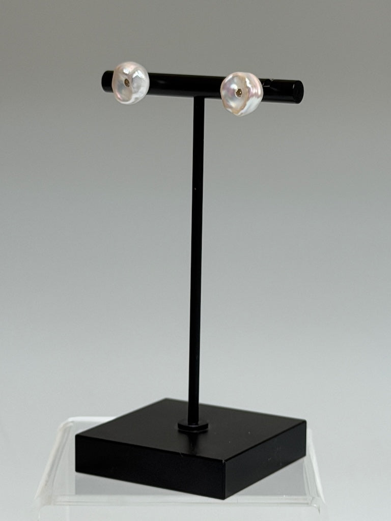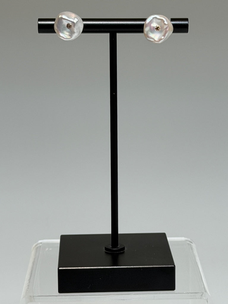 WHITE FRESH WATER KESHI PEARL & NATURAL DIAMOND STERLING SILVER STUD EARRINGS AV2629