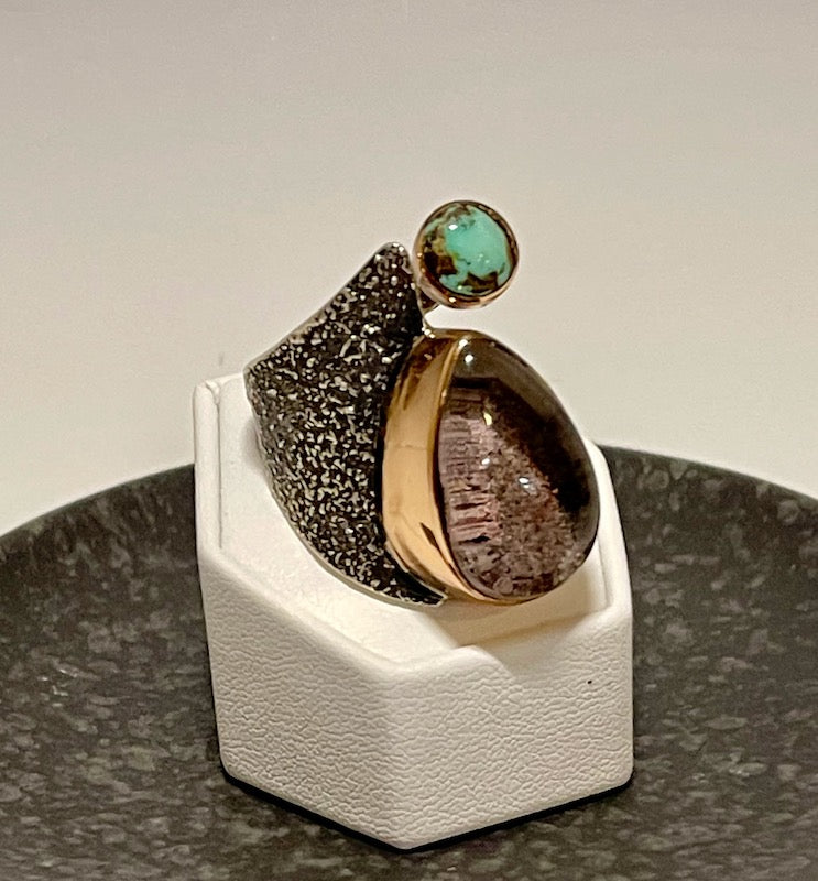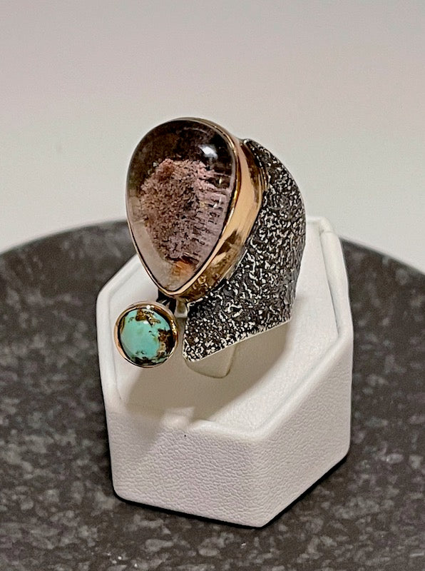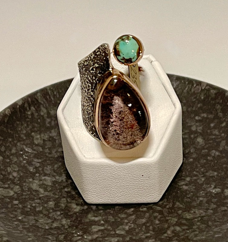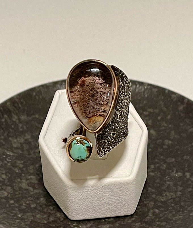 LUDOLITE AND TURQUOISE RING WITH STERLING SILVER AND 14K GOLD BR235195