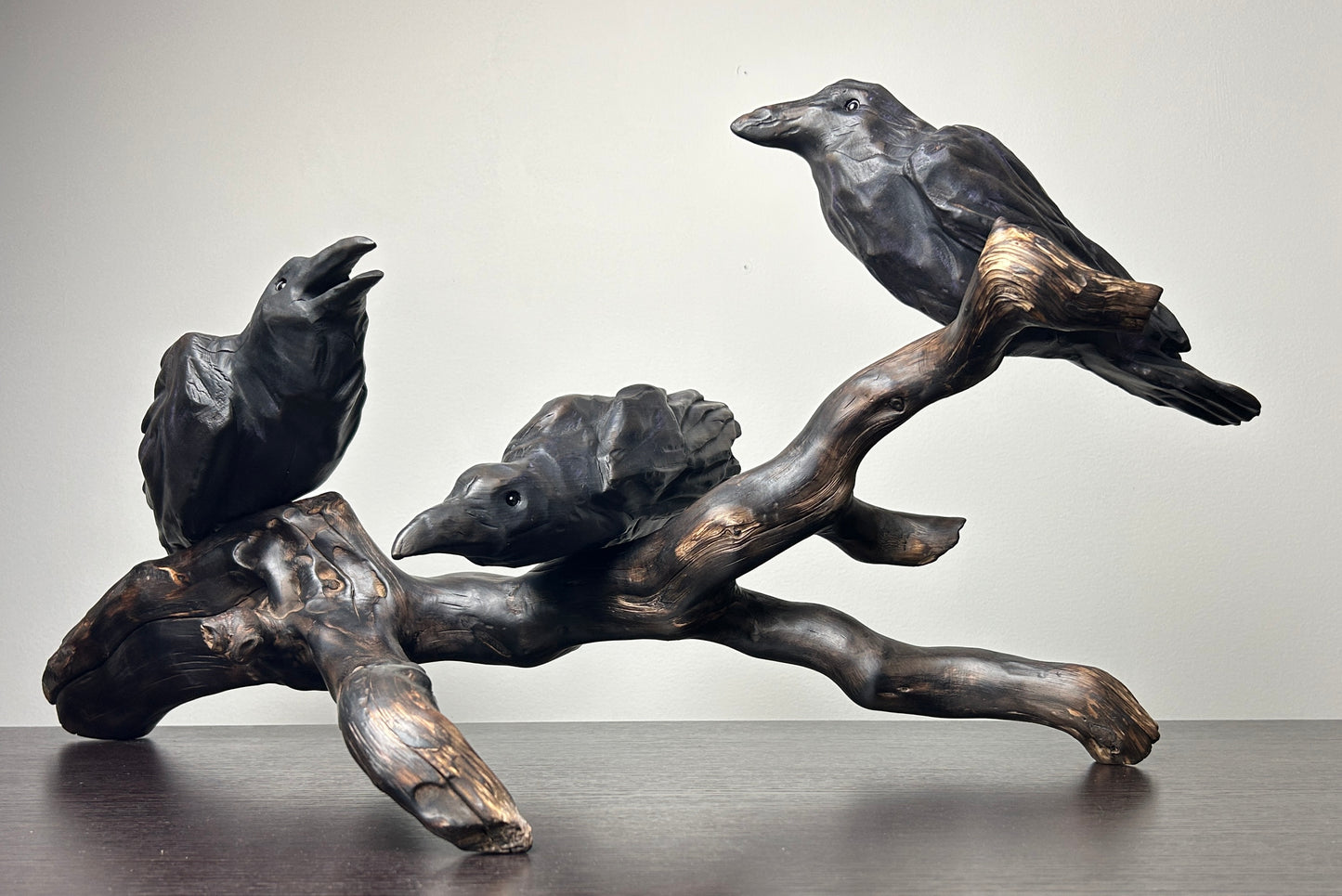 "OLD FRIENDS" SOURWOOD AND CORKSCREW HAZEL WOOD SCULPTURE