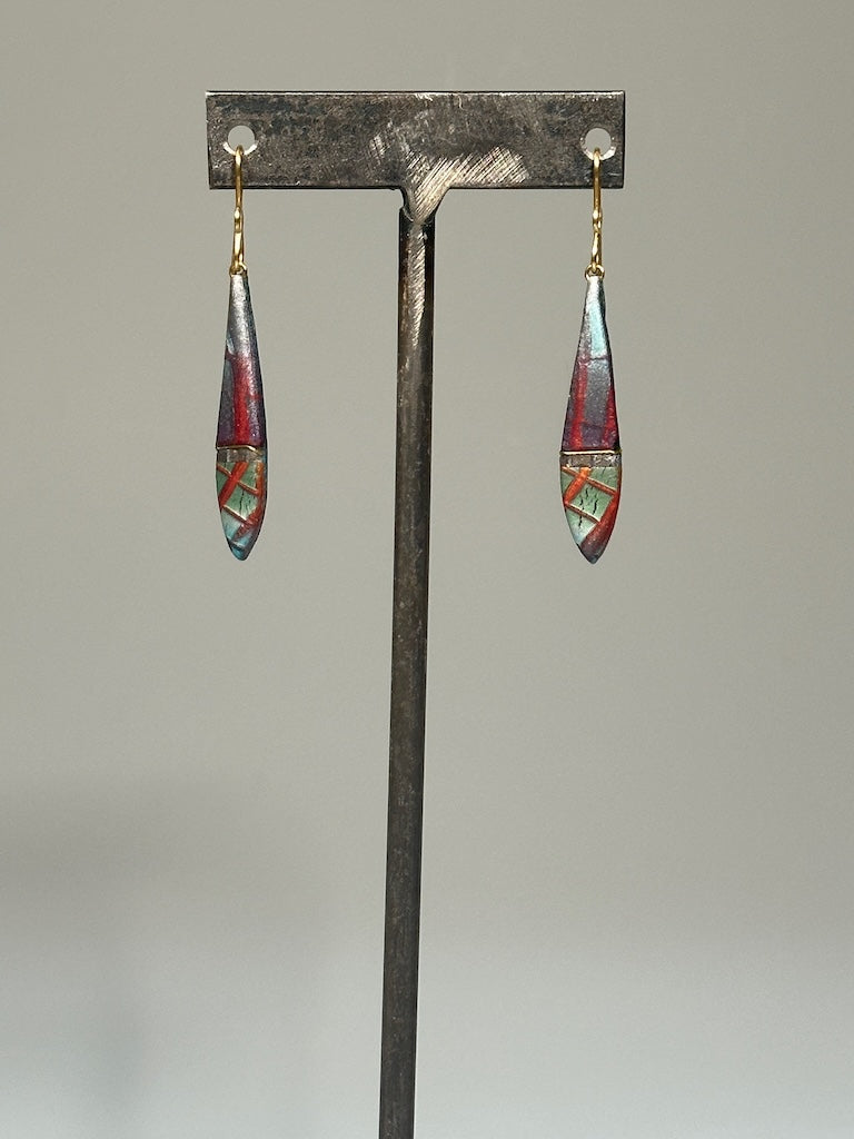 MULTI PATTERN POLYMER CLAY EARRINGS WITH EMBEDDED WIRE ACCENTS ON BRONZE EAR WIRES PCE852