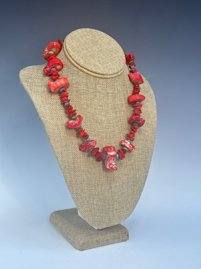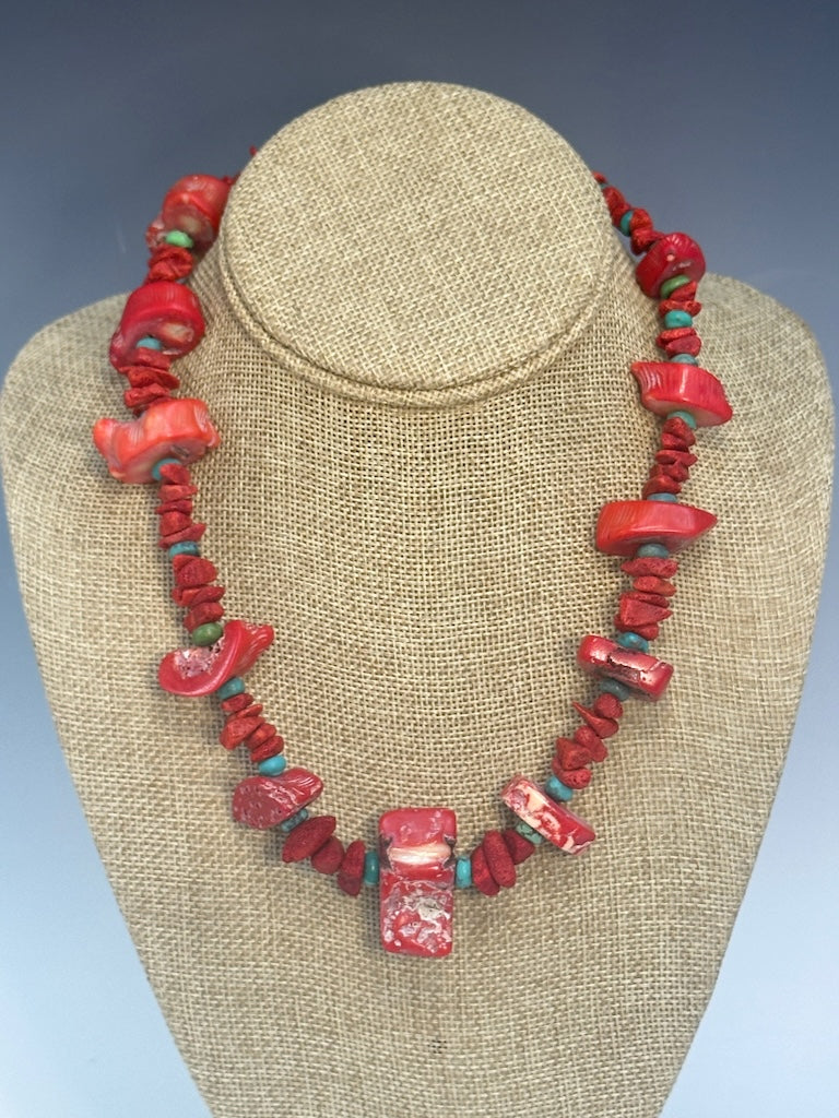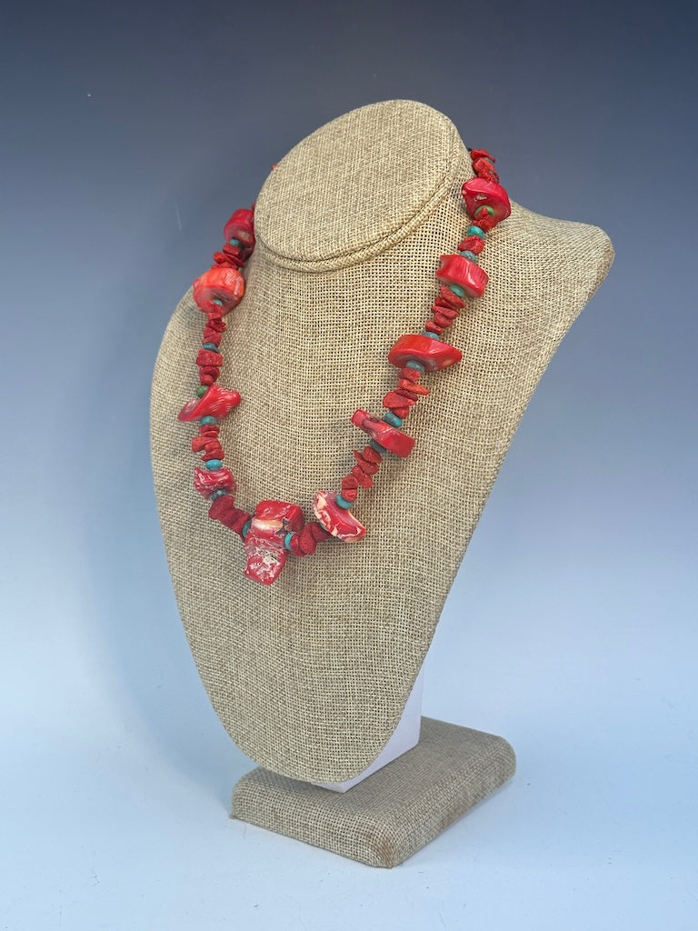 NATURAL TURQUOISE AND CORAL STATEMENT NECKLACE LCN925