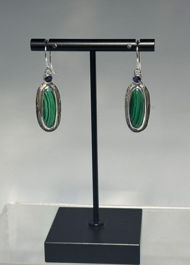 MALACHITE, IOLITE AND STERLING SILVER EARRINGS NM602