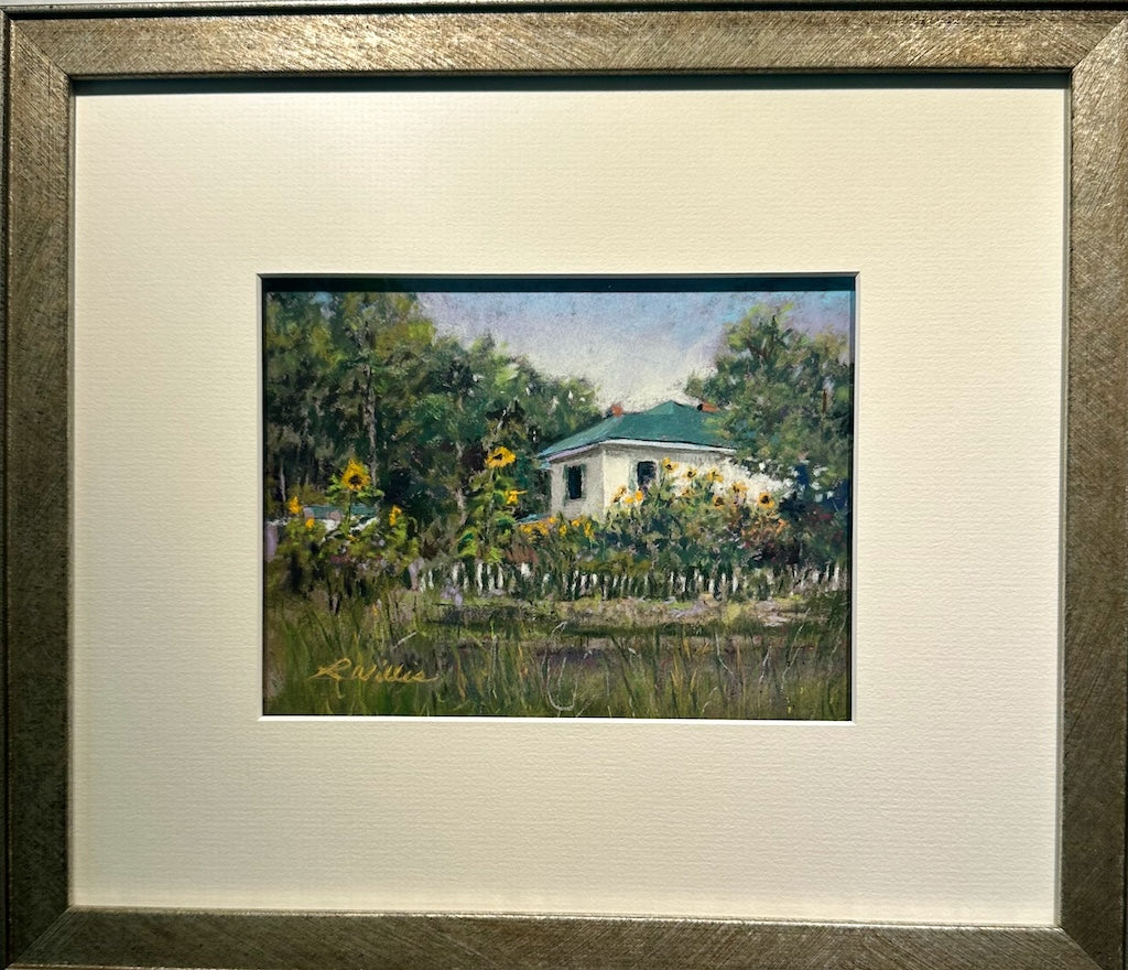 "HOUSE AND SUNFLOWERS" ORIGINAL PASTEL/FRAMED