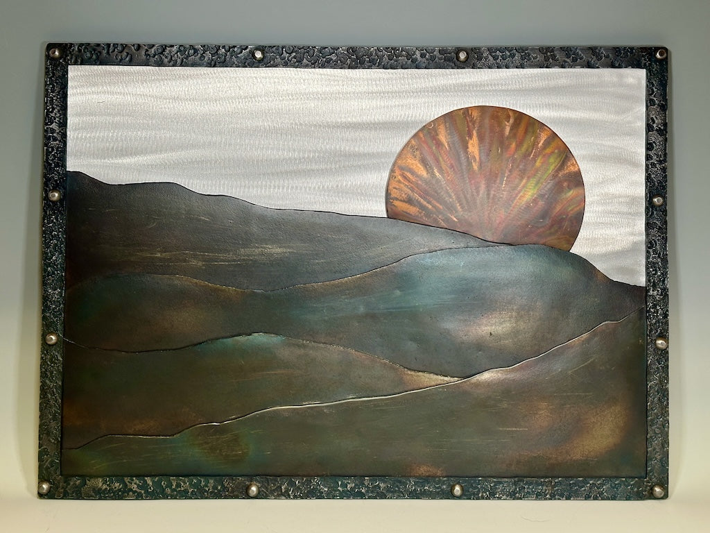 "MOUNTAIN SUNRISE" HAND FORGED METAL WALL HANGING