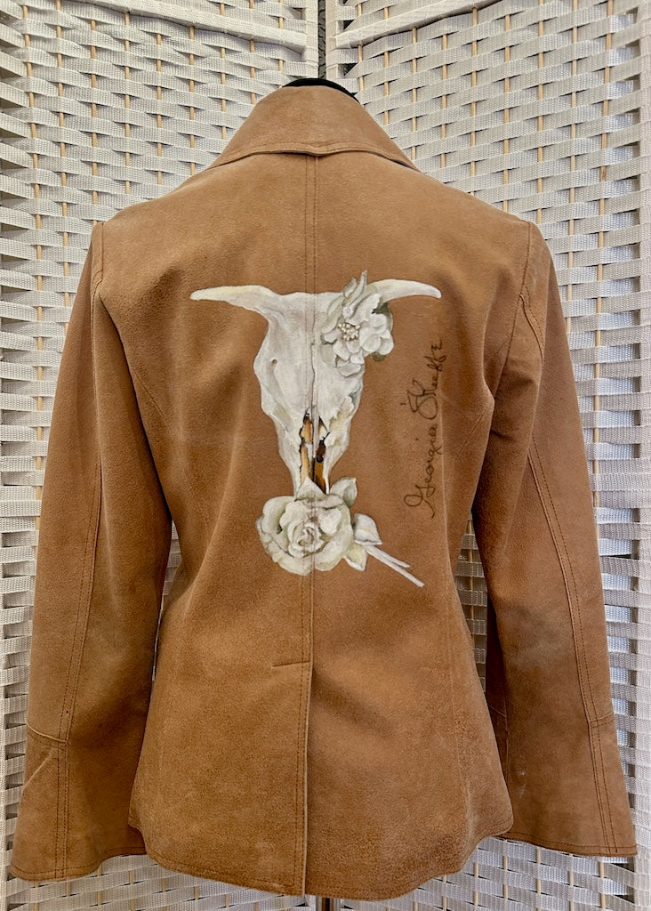 GEORGIA OKEEFE'S COW SKULL WITH CALICO ROSES HAND PAINTED LEATHER BLAZER LM35