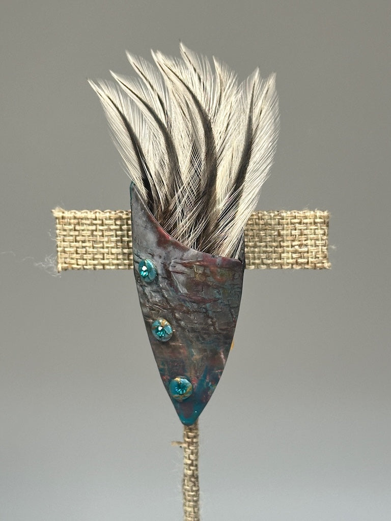 ORGANIC POLYMER CLAY MAGNETIC BROACH WITH FEATHERS AND SWAROVSKI CRYSTAL ACCENTSPCB837