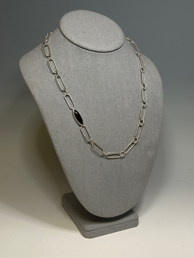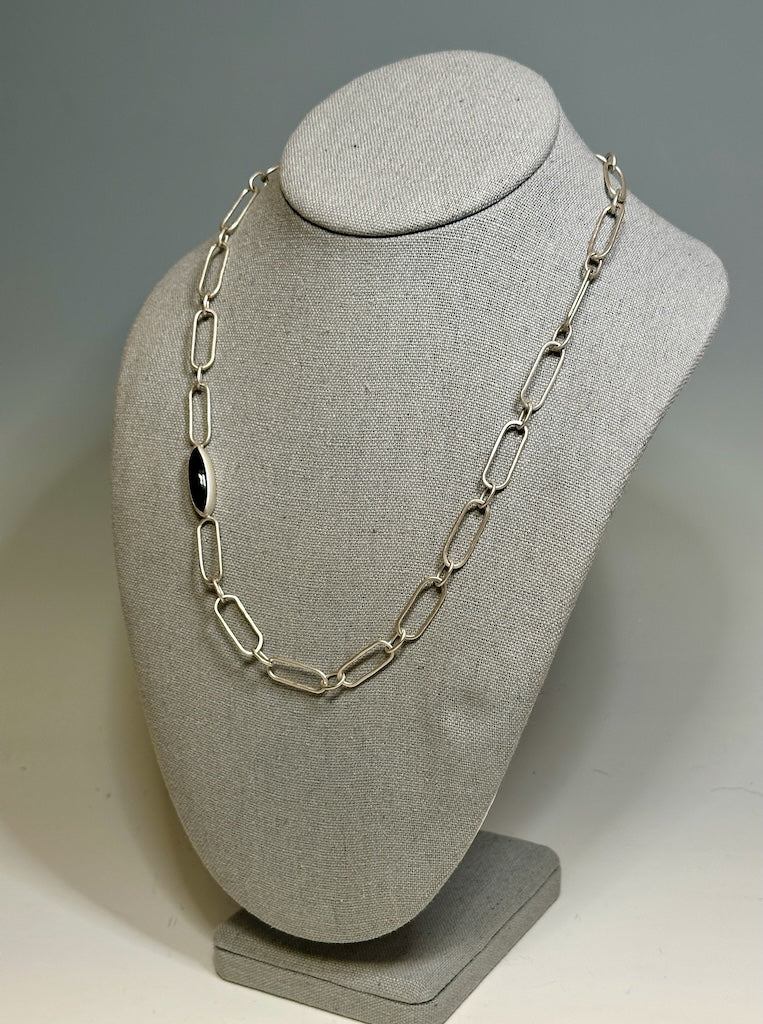 STERLING SILVER CHAIN NECKLACE WITH BLACK ONYX MB197N