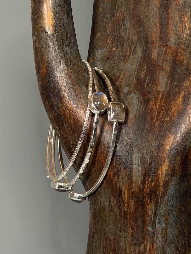 SET OF 3 MOONSTONE STERLING SILVER BANGLE BRACELETS NM691B