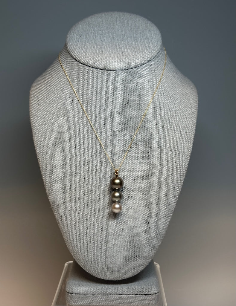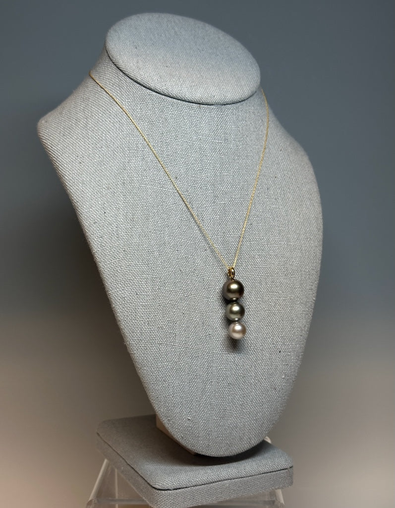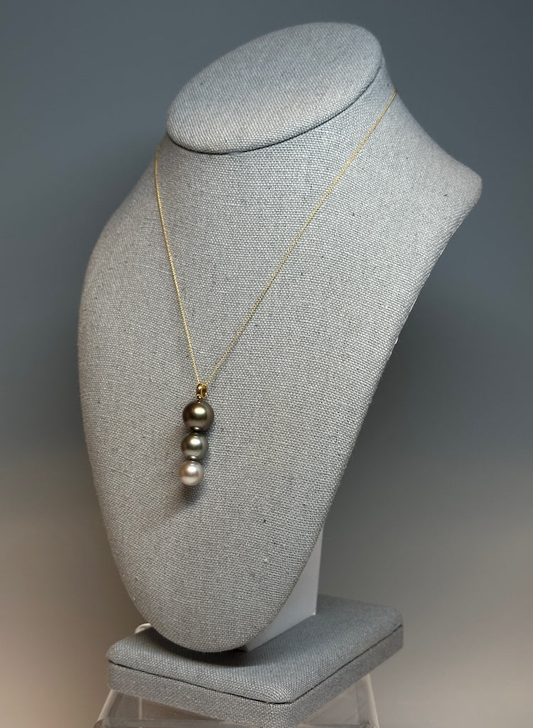 18K YELLOW GOLD FANCY ROUND GRADUATED TAHITIAN PEARL PENDANT NECKLACE AV2517
