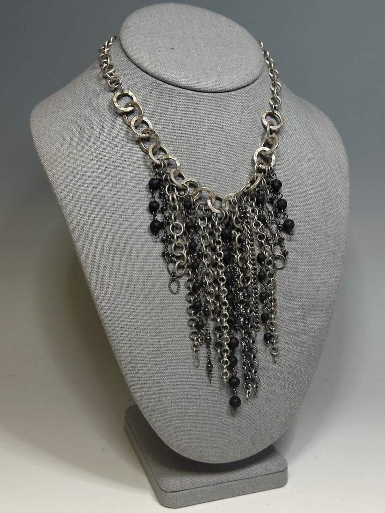 MIXED METAL AND LAVA STONE STATEMENT NECKLACE LCN924