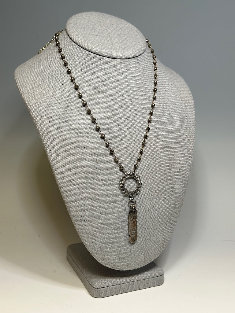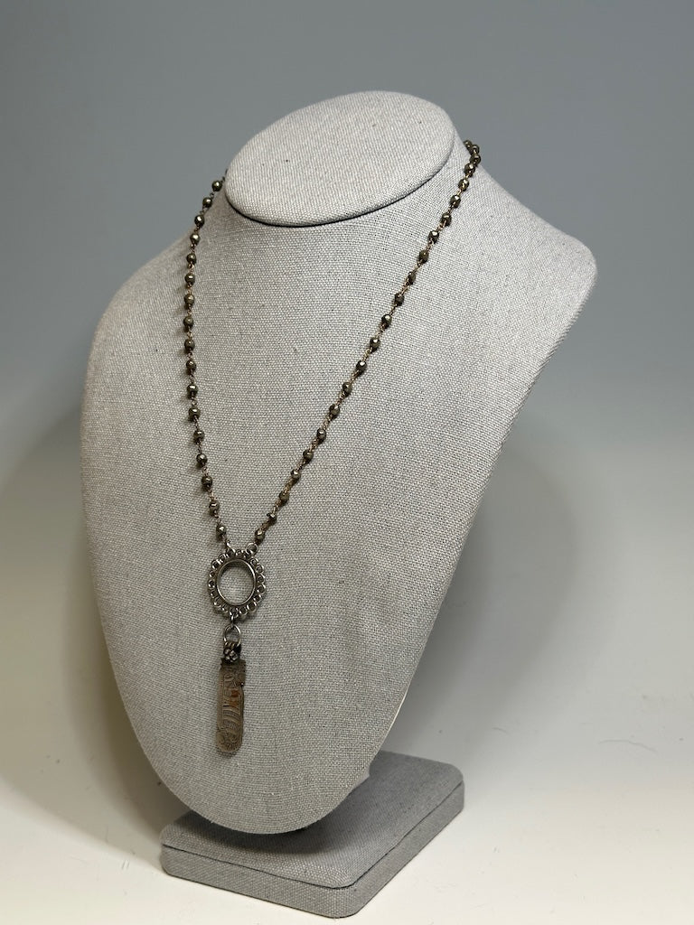PYRITE AND OXIDIZED SILVER PENDANT NECKLACE LCN923