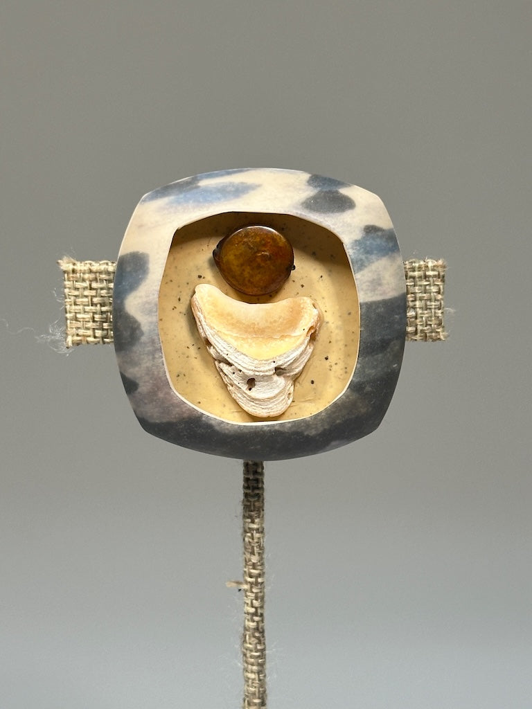 SAND SWEPT SHELL AND COIN PEARL POLYMER CLAY MAGNETIC BROACH PCB835