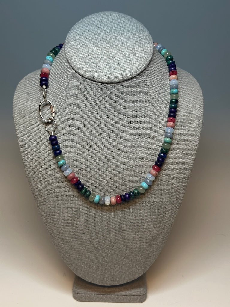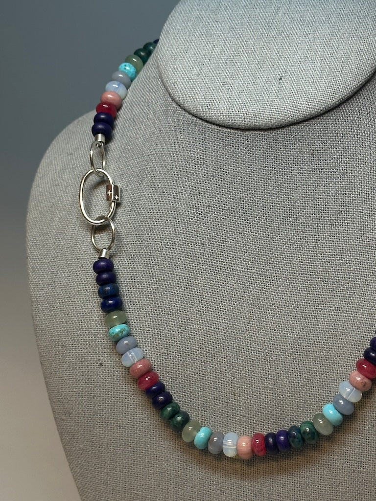 SEMI-PRECIOUS MIXED RONDELLE STONE NECKLACE WITH STERLING SILVER CARIBEANDER CLASP AV2542
