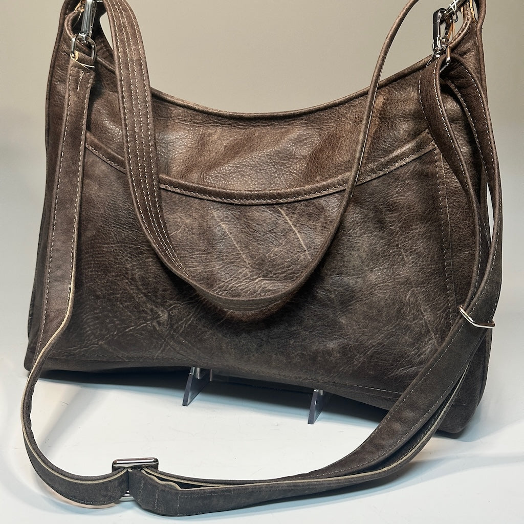 SERENDIPITY BROWN ACID WASH LEATHER HANDBAG NH176