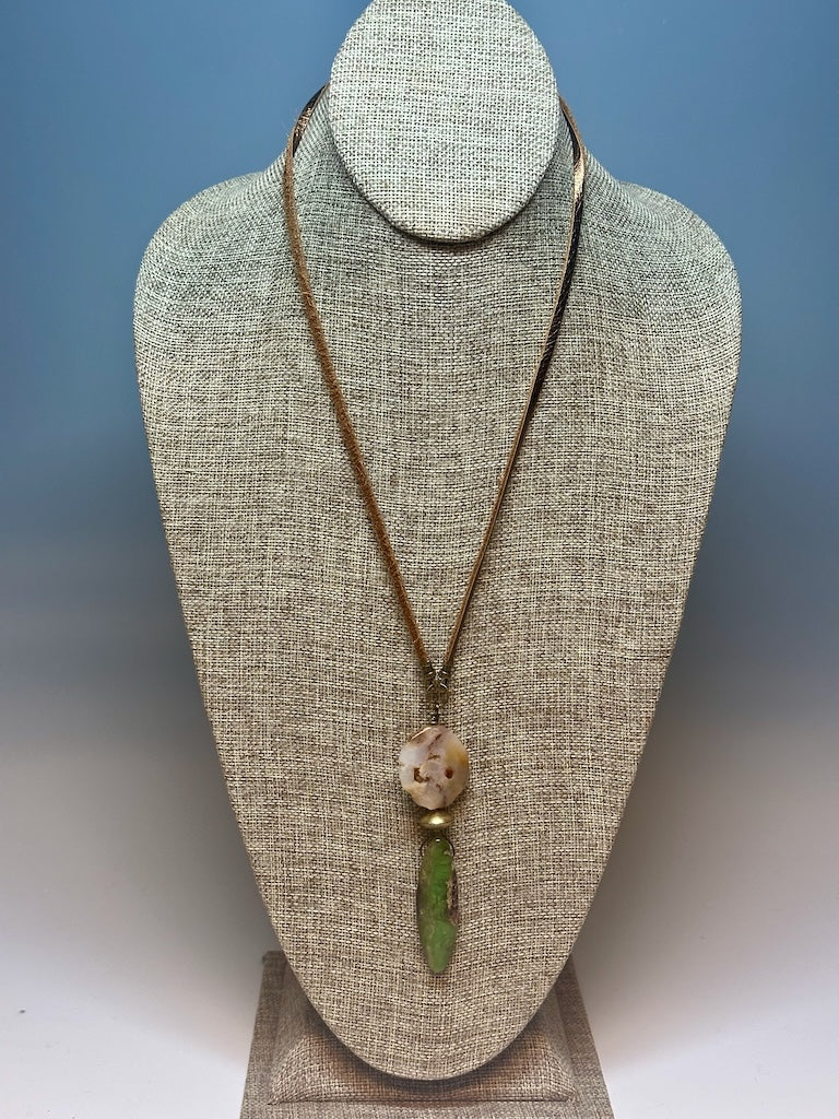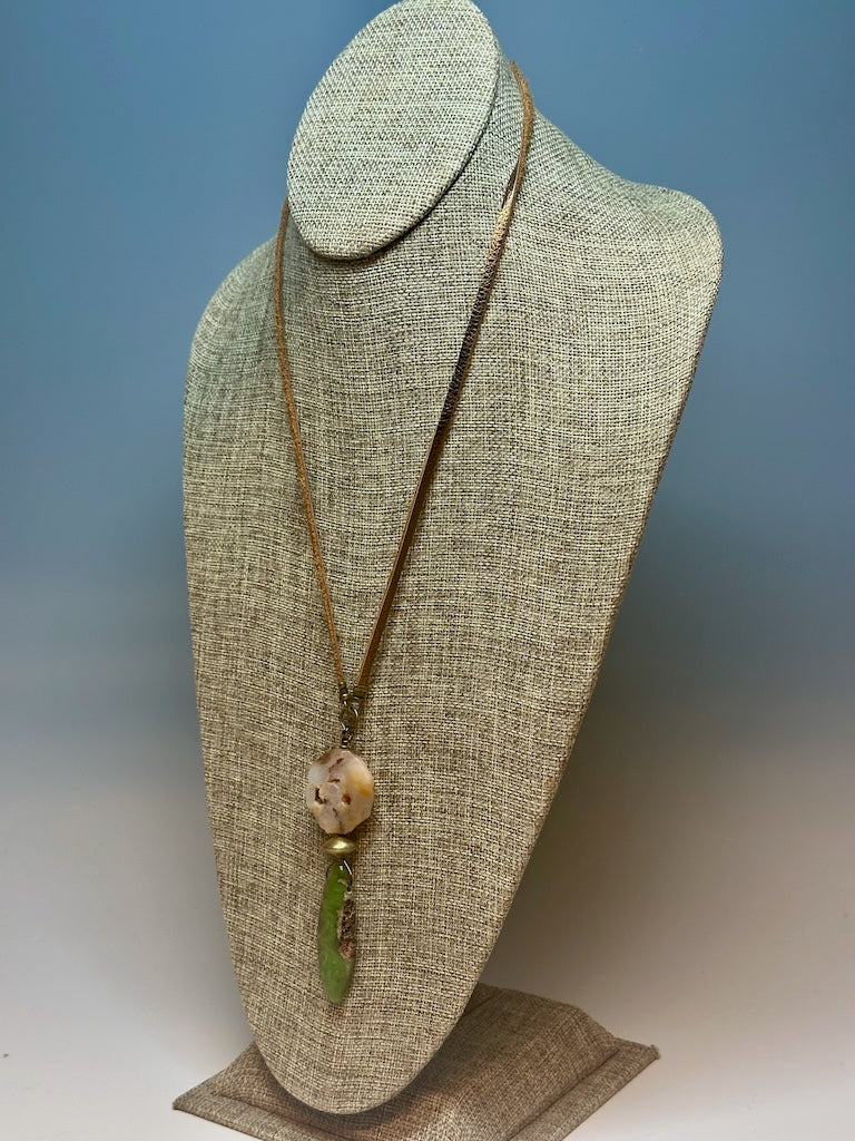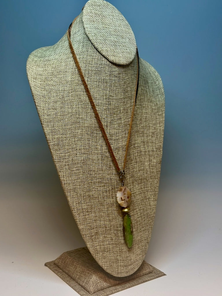 CHRYSOCOLLA AND BRASS PENDANT ON DEER SUEDE LEATHER LCN778