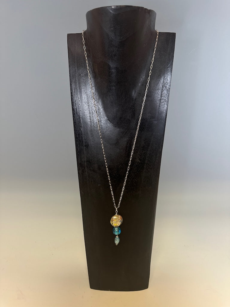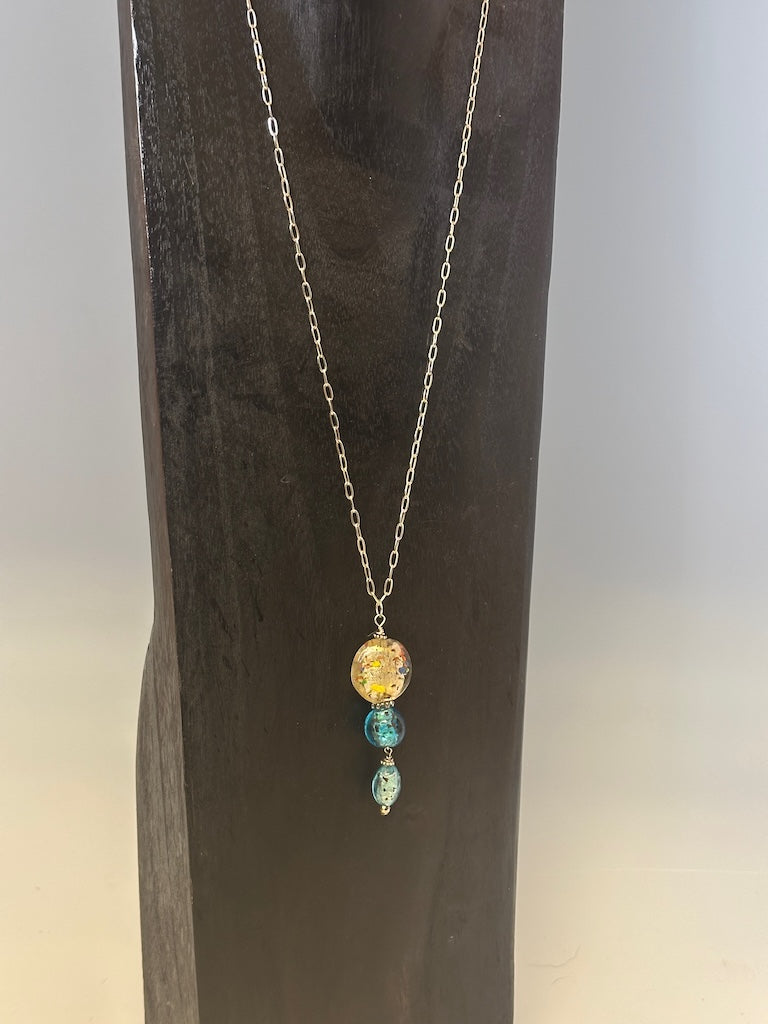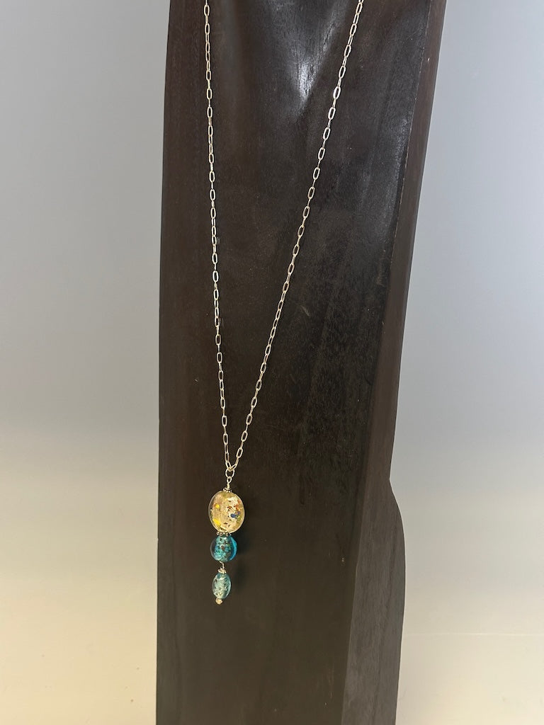 VINTAGE GLASS LAMP WORK BEADS AND STERLING SILVER NECKLACE LCN936