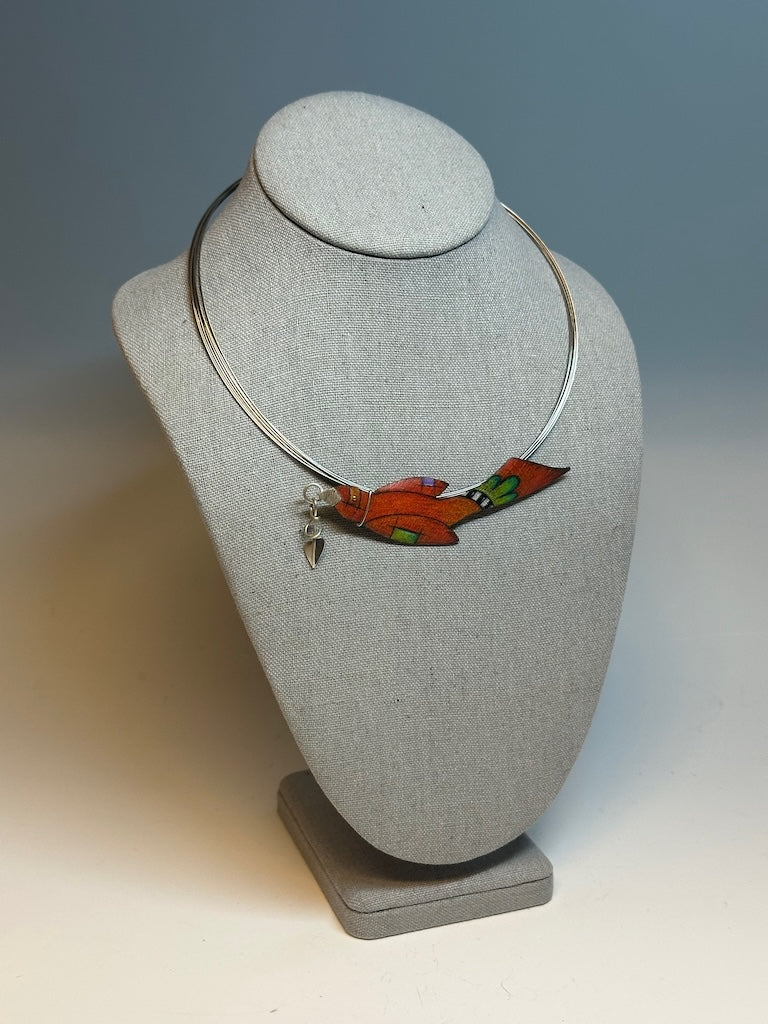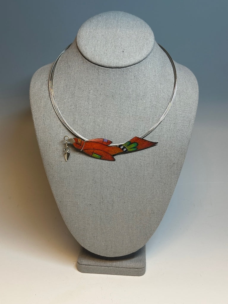 RED BIRD CHOKER ON STAINLESS CABLE NECK WIRE DKA233