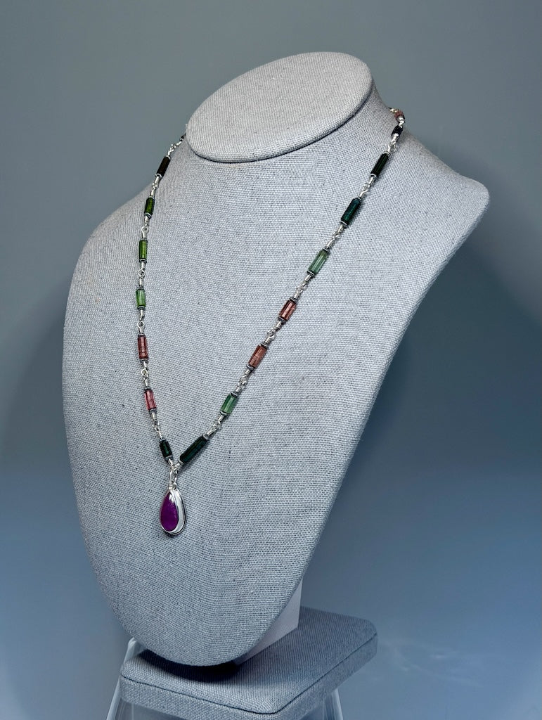 PINK & GREEN TOURMALINE NECKLACE WITH RUBY PENDANT NM693N