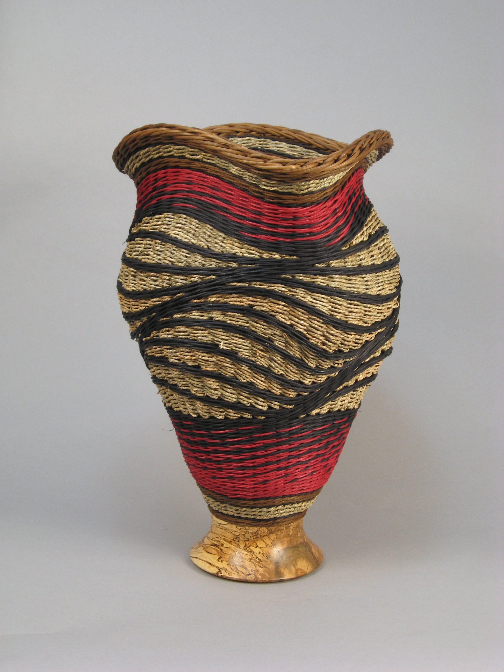 TRIPLE SPIRAL MIXED MEDIA BASKET WITH SPALTED MAPLE BASE